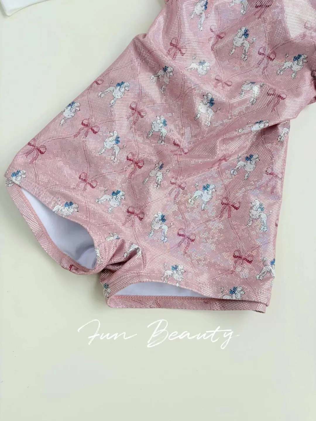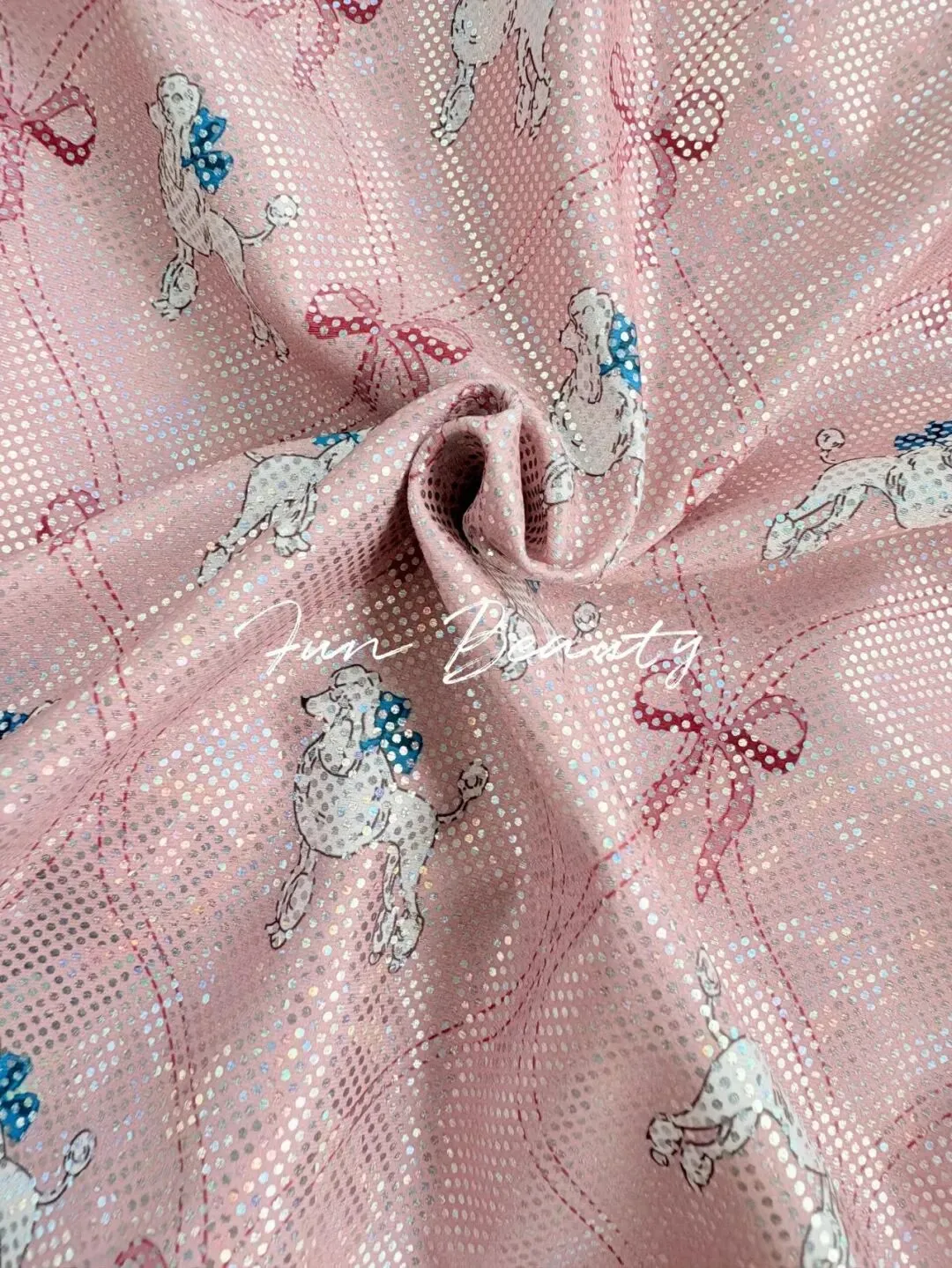 把布料轻轻拢起一个小旋涡,镜头贴近去拍,让粉色底,亮片感小圆点,蝴蝶结线条和小马图案都自然聚在一起,褶皱不用太重,轻轻捏出中心就可以,