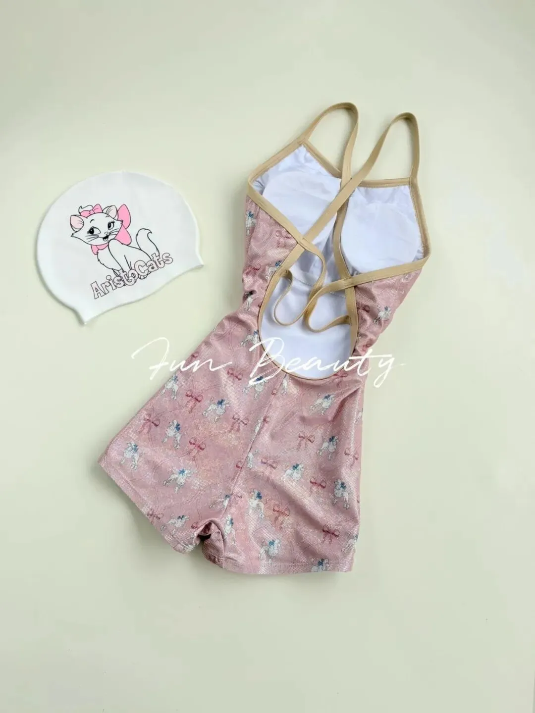 很多人拍这种平铺产品图,最怕的不是颜色不够亮,而是拍出来又平,又乱,细节看不清,整张图没有呼吸感,这组图片本身就很有优势,奶油底色配粉色小马印花泳衣,再加白色泳帽,颜色已经很轻很软了,