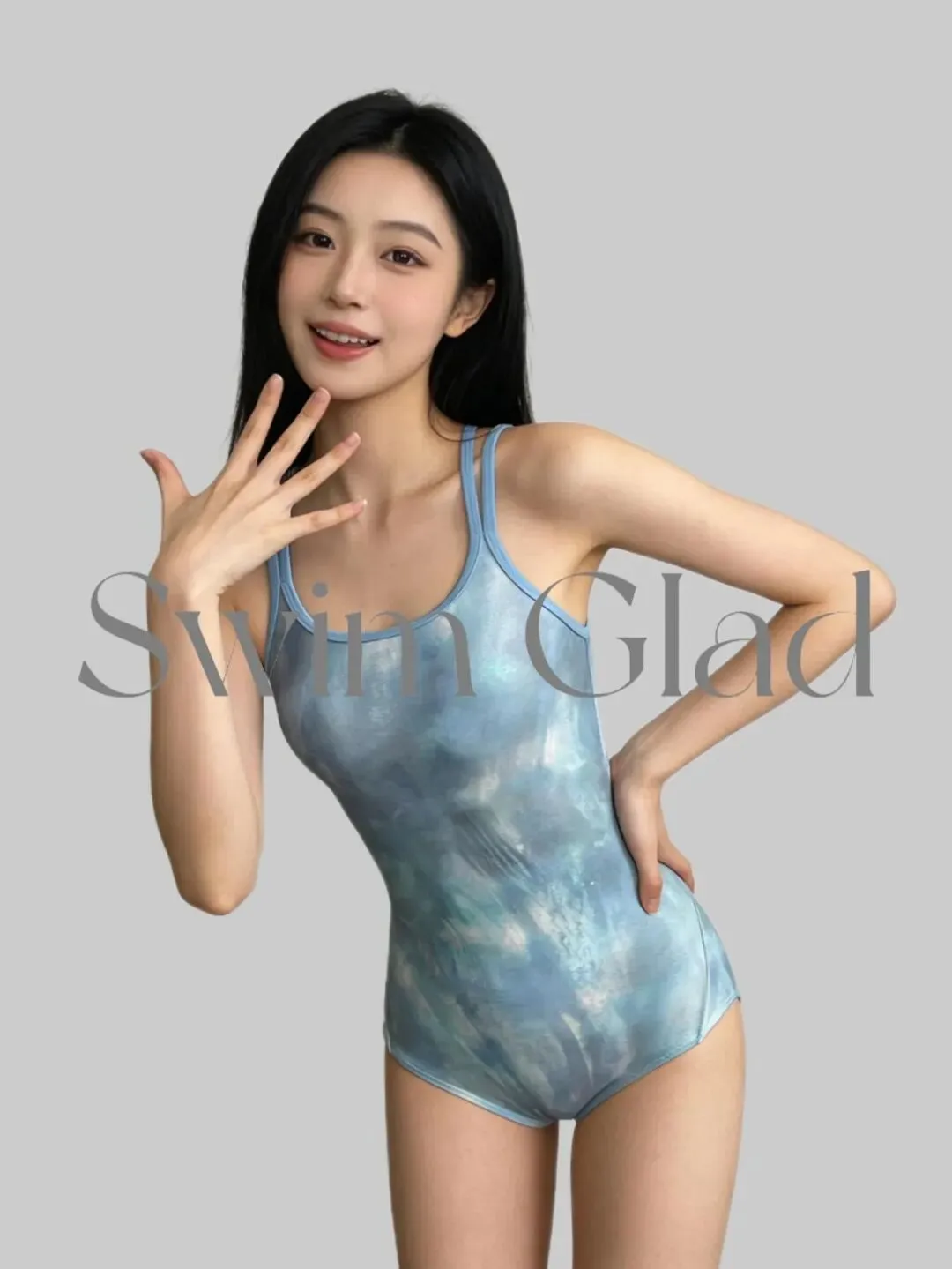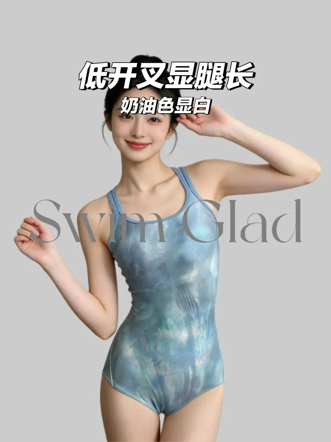 很多人拍这类照片,最怕的不是镜头近,而是身体一站直就僵,手一抬就不知道往哪放,这组图其实很适合普通人参考,干净纯色背景,加上奶蓝色泳装,自带轻透感,人物会显得特别干净利落,