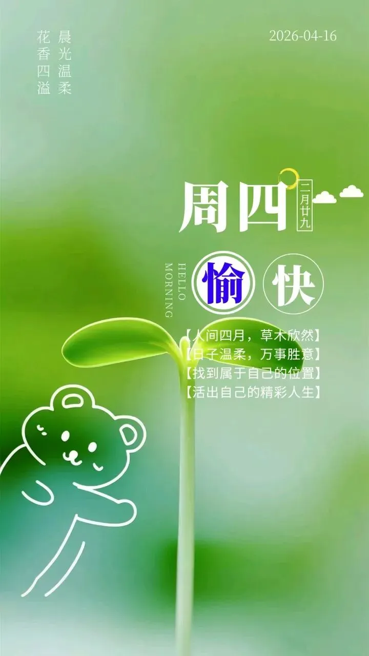 当前位置:首页>美女资讯>4月16日周四愉快图片,早安祝福问候图片大全