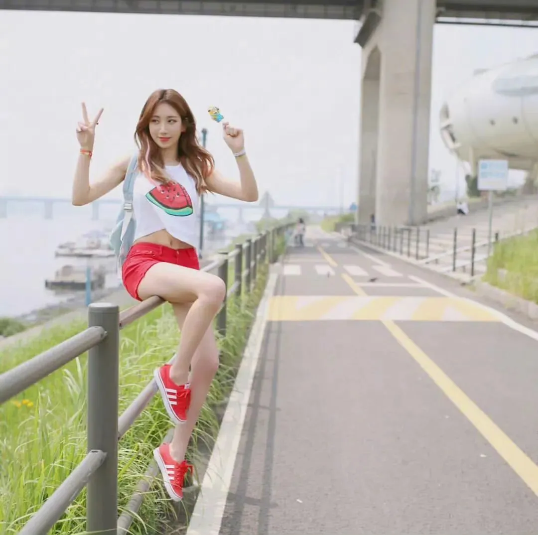 当年地位:和DJ Soda并称韩国球鞋双女神,2015-2016年顶流甜妹鞋头,笑起来超治愈,泳装+球鞋的搭配自成一派,AJ、倒钩、厚底鞋随便搭,圈粉无数。