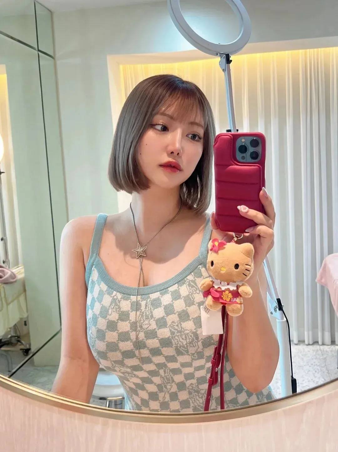 她换了一件白色的浴衣式外套,上面只有淡淡的灰色水纹,像是雨丝落在水面上的痕迹。头发松松地挽着,几缕碎发垂在耳边。海风吹过来,带着水汽和远处烧烤的烟火气。她的中日混血,不是标签,而是一种视角。