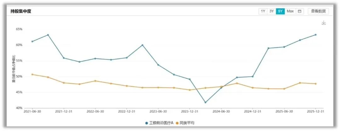 工银前沿医疗A的持仓集中度(资料来源:Wind)