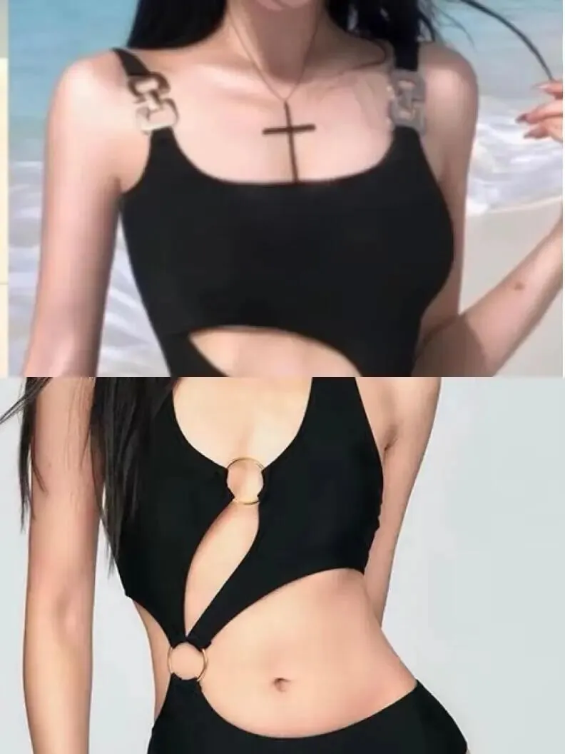 如果泳衣上有海星,金属环,贝壳感配件,手就别闲着,轻轻扶一下配饰边缘,或者顺着腰链的位置慢慢带过去,动作要轻,像在整理衣服,不要真的用力抓,