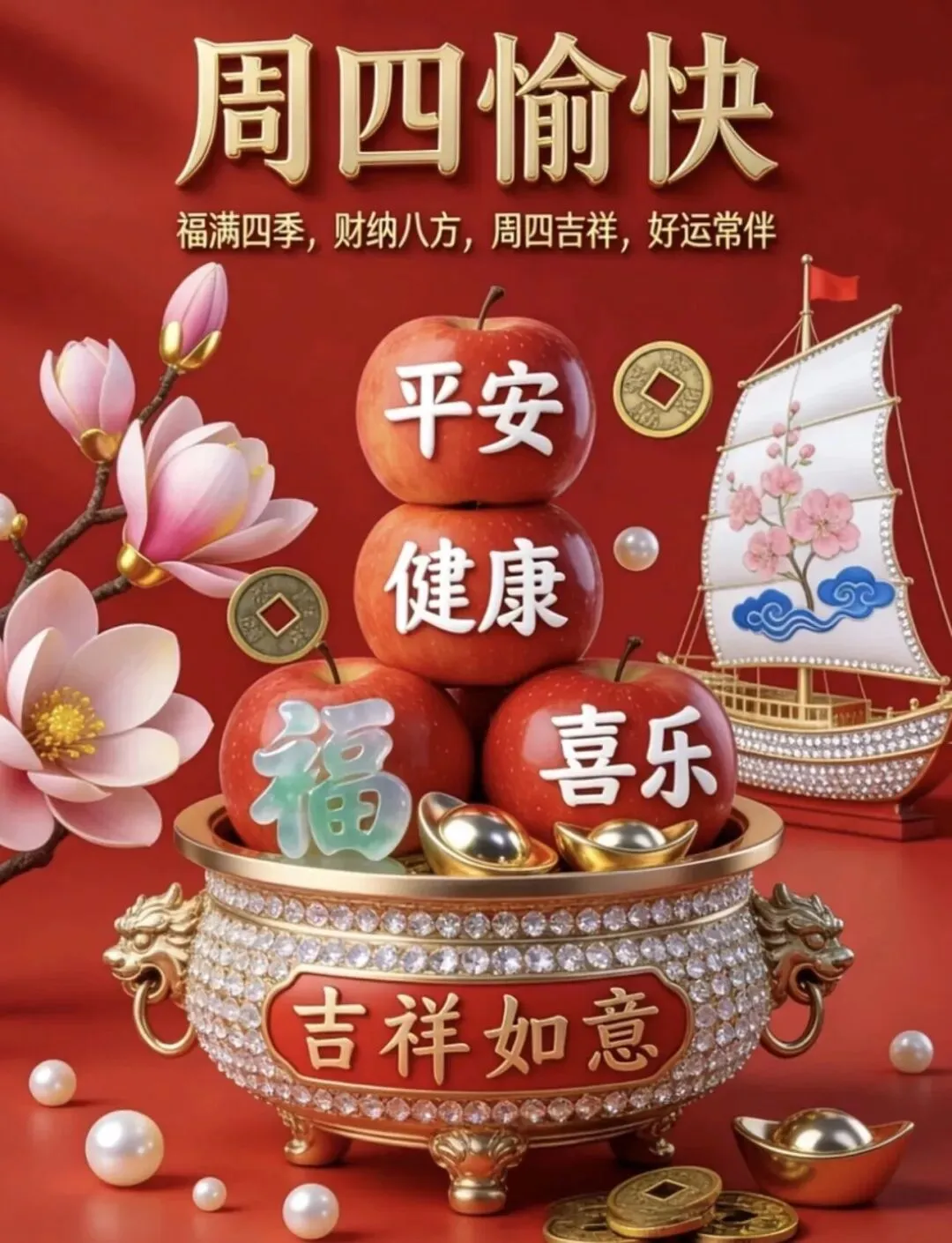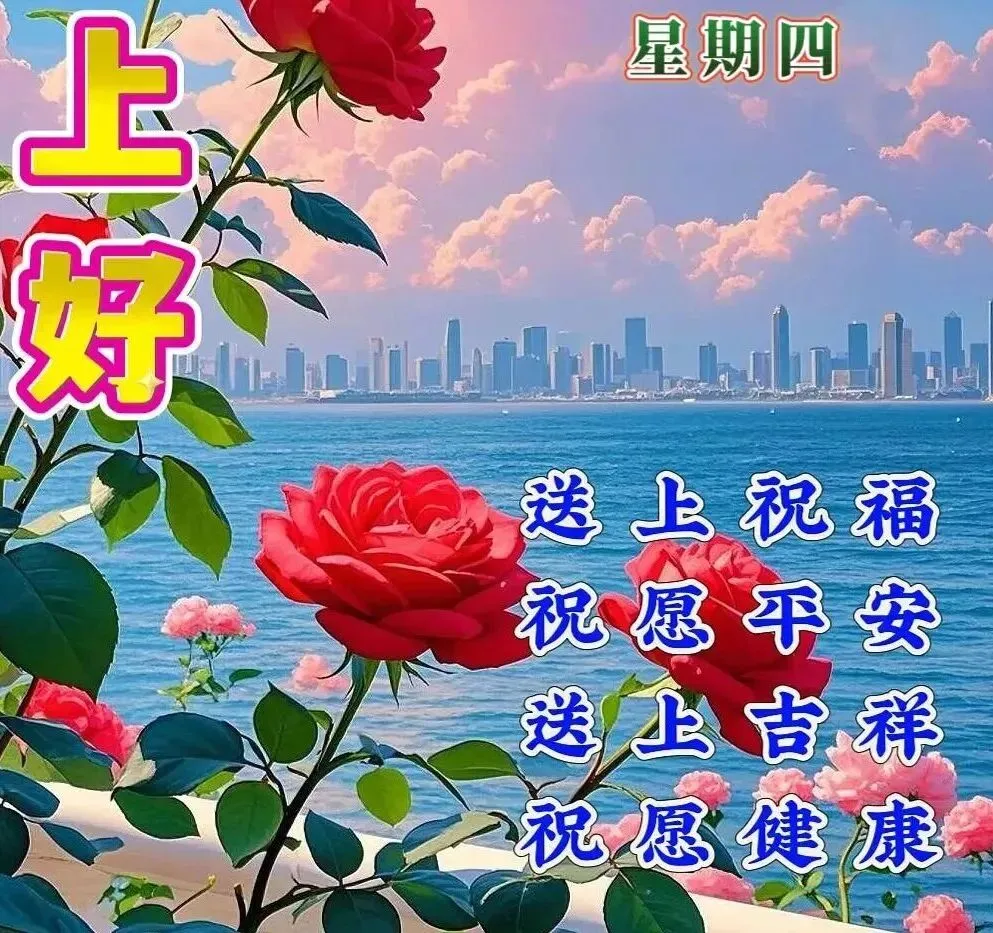 清晨问候暖如阳🌞,真情祝福心中藏💌,人生路上常相望👣,难忘今生的来往🤝,一声问候情意烫💖,幸福美满家安康🏡。周四早上好!🌹🍻🤝❤️🌸春花烂漫香满径🌼,春意盈盈好心情😊。晨光第一缕☀️,捎去我最真的祝福💖。愿你三餐可口🍚,四季如春🍃,家人围坐👨‍👩‍👧‍👦,笑语常留🎉。周四早上好,朋友!