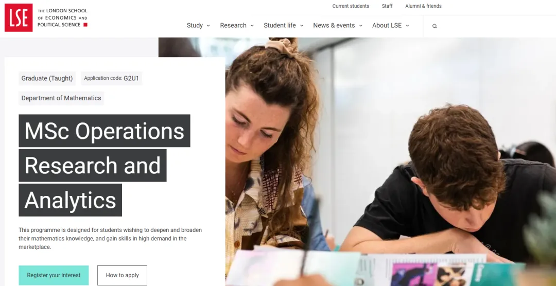 LSE MSc in Operations Research & Analytics 硕士项目,核心是通过数学建模、优化理论、统计与机器学习等方法,解决金融、咨询、科技、公共政策等领域的复杂决策与优化问题。项目面向有扎实数学背景(微积分、线性代数、统计学等)的学生,必修课(3 门核心,均为半学分):优化理论与建模(Optimisation Theory and Modelling)、随机建模与仿真(Stochastic Modelling and Simulation)、数据分析与统计方法(Data Analysis and Statistical Methods),夯实运筹学与数据科学的理论与工具基础。选修课(部分):算法与计算、组合优化、博弈论、高级机器学习、金融计量学、定价策略、供应链优化等。