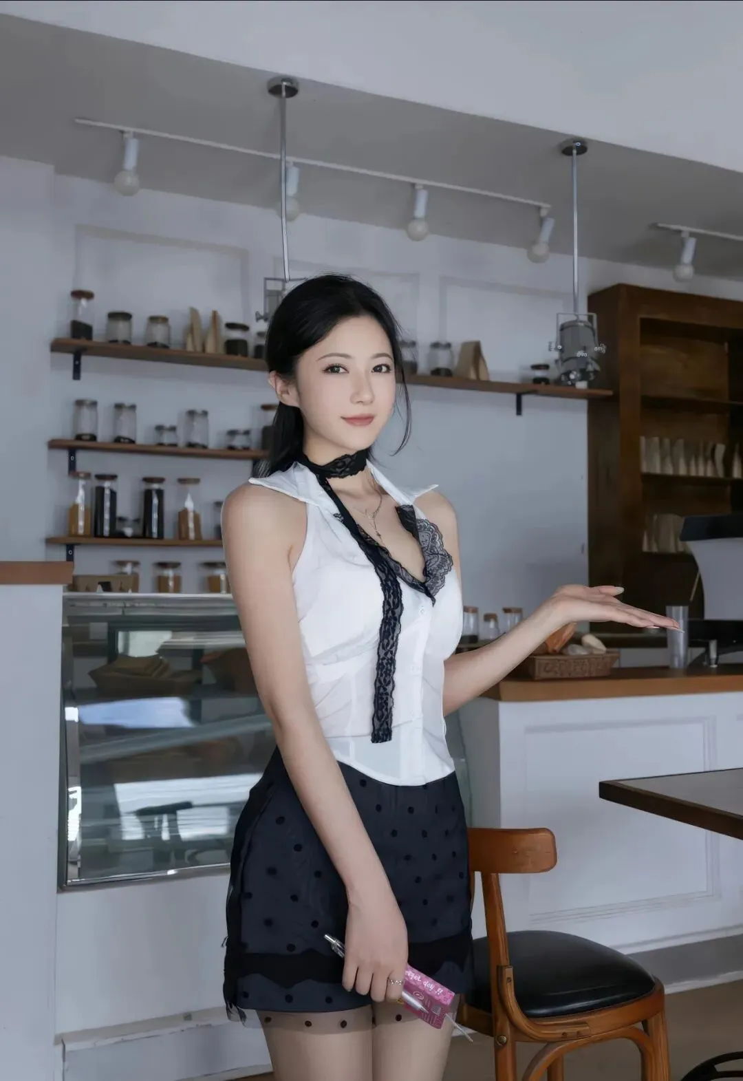 当前位置:首页>美女资讯>美女模特鱼子酱Fish 白衬衫黑裙定格咖啡店甜妹