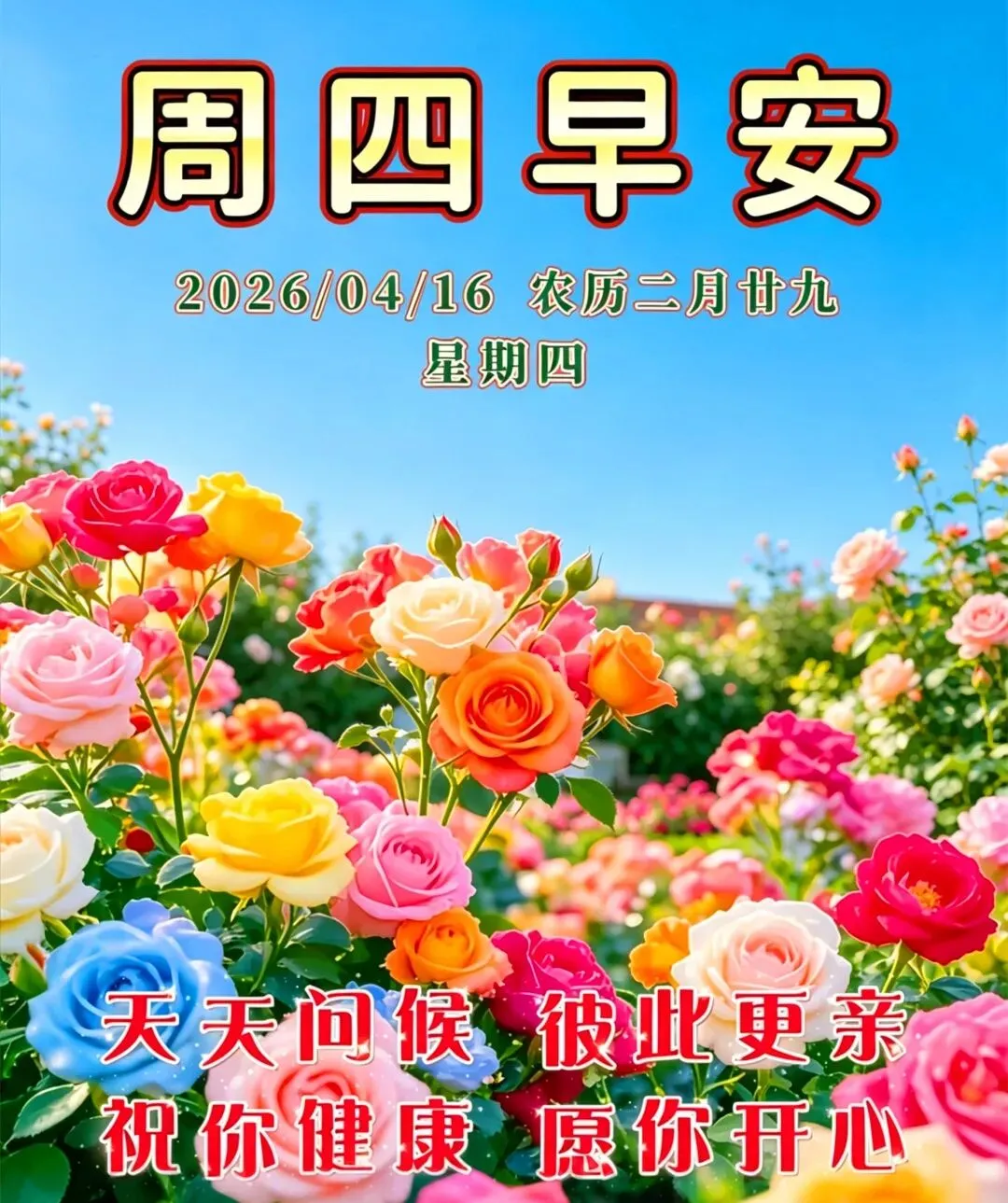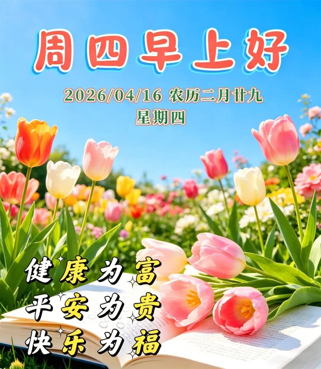 当前位置:首页>美女资讯>4月16日周四早安祝福图片:阳光在照,好运在笑,我的祝福一早送到,周四愉快!