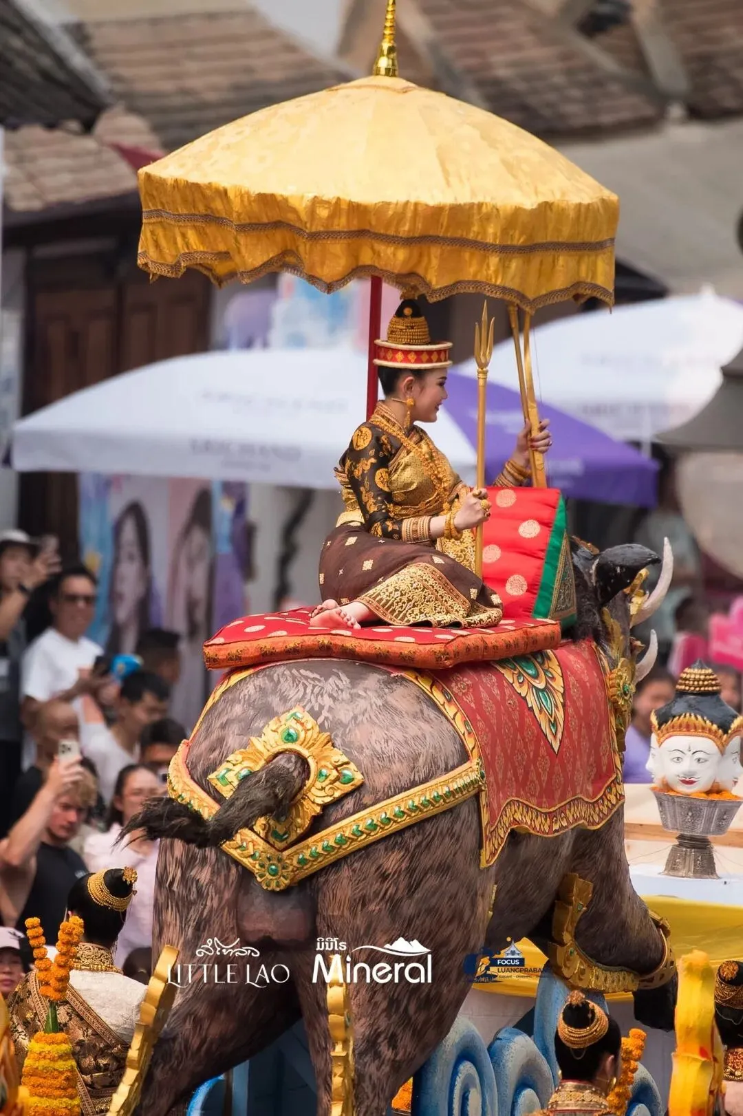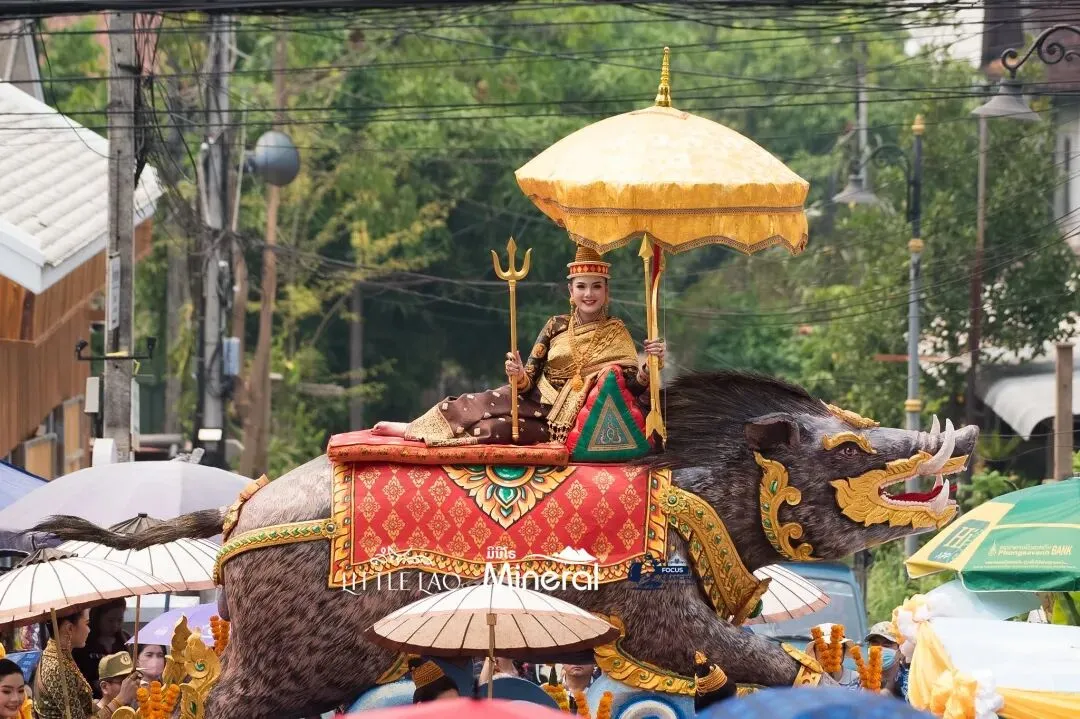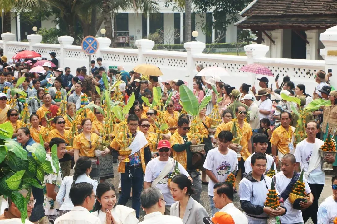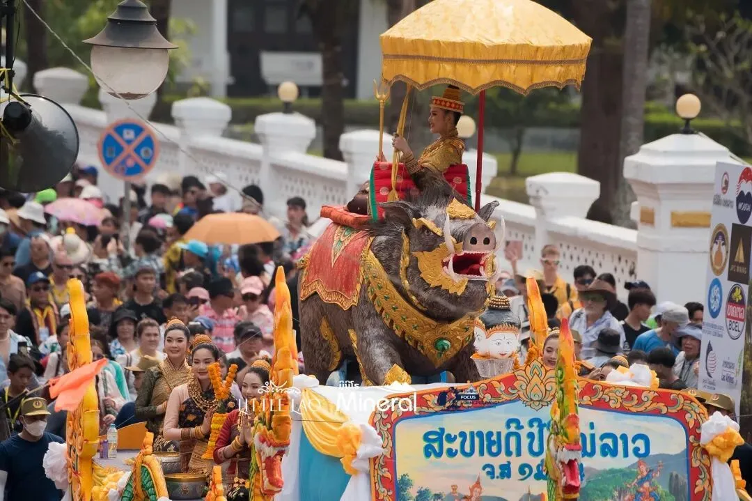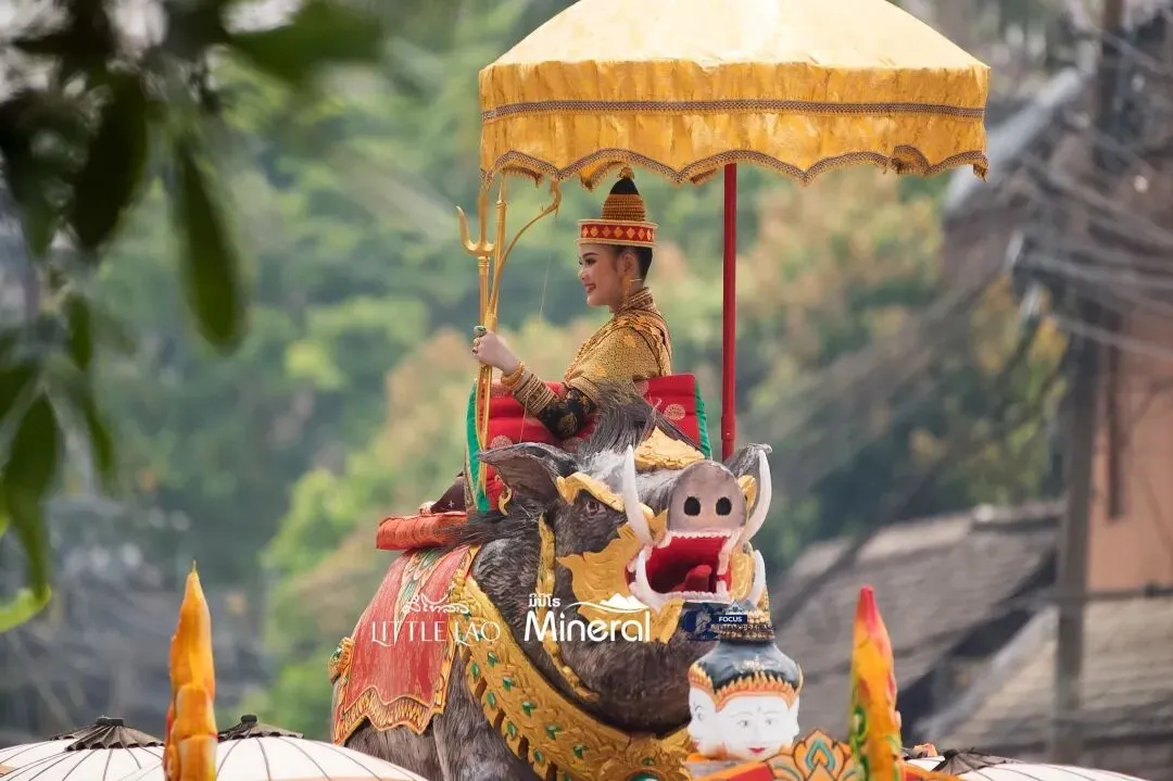 老挝泼水节最高潮!2026年琅勃拉邦宋干女神骑猪巡游,美翻全城,现场直击→