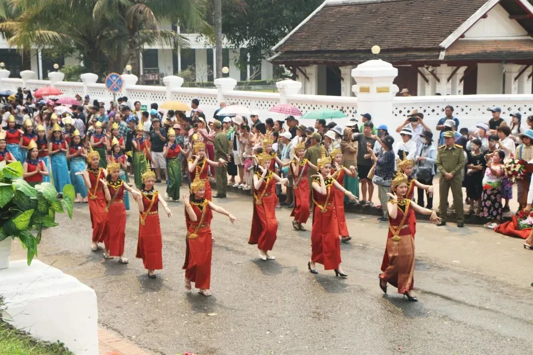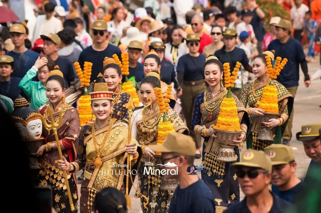 游行队伍从玛哈塔寺(又称小塔寺)出发,沿着西萨旺翁大街一路行进至香通寺。近40支方阵、约3000名参与者汇聚成一条流动的传统文化长廊。