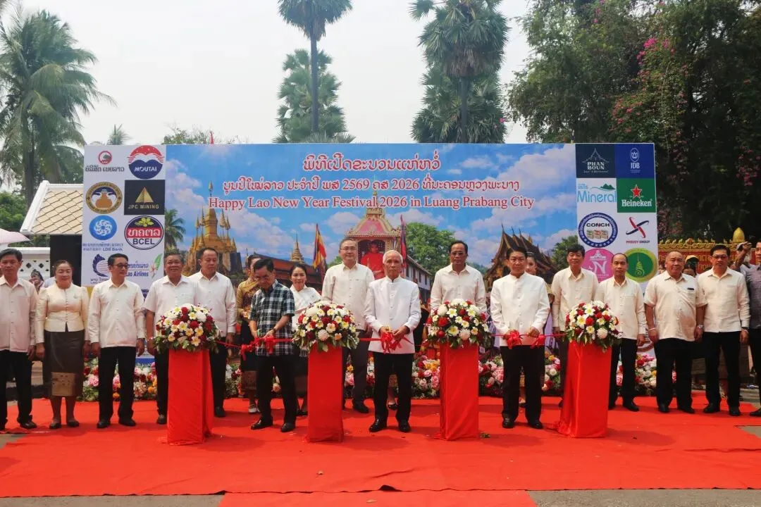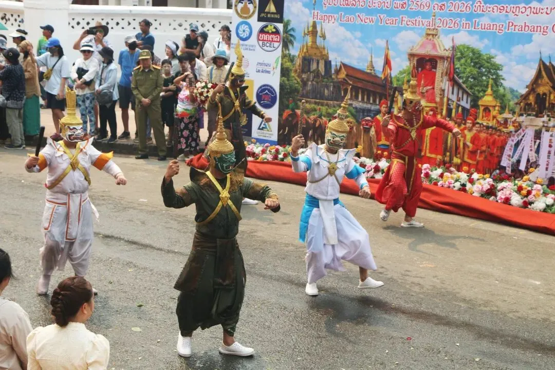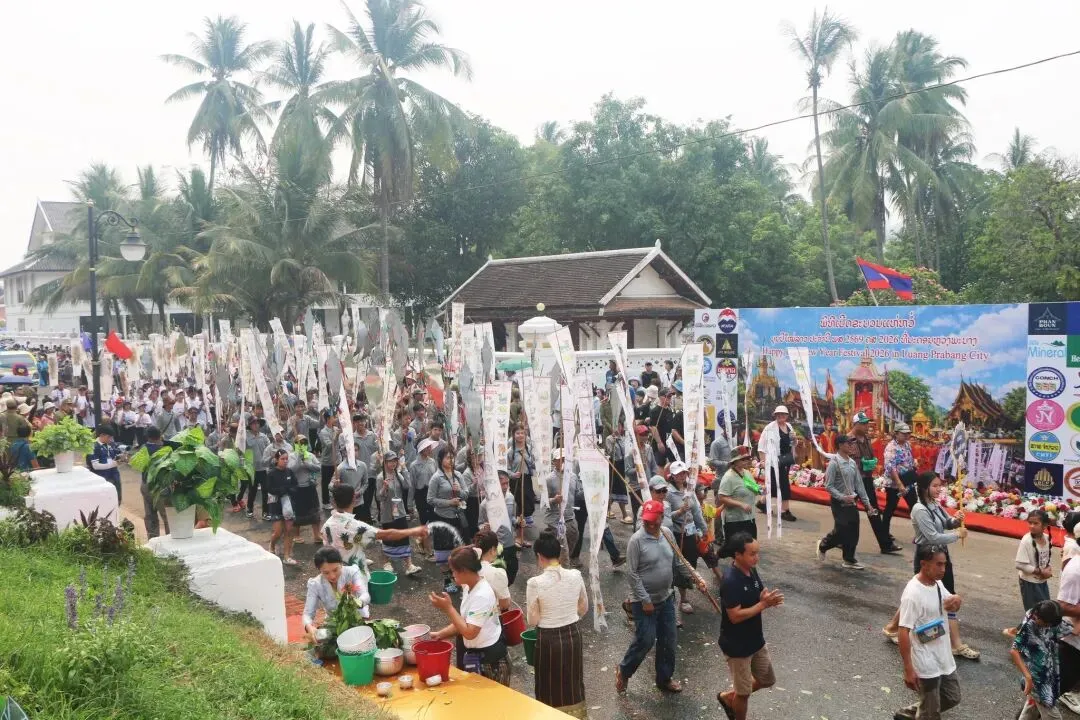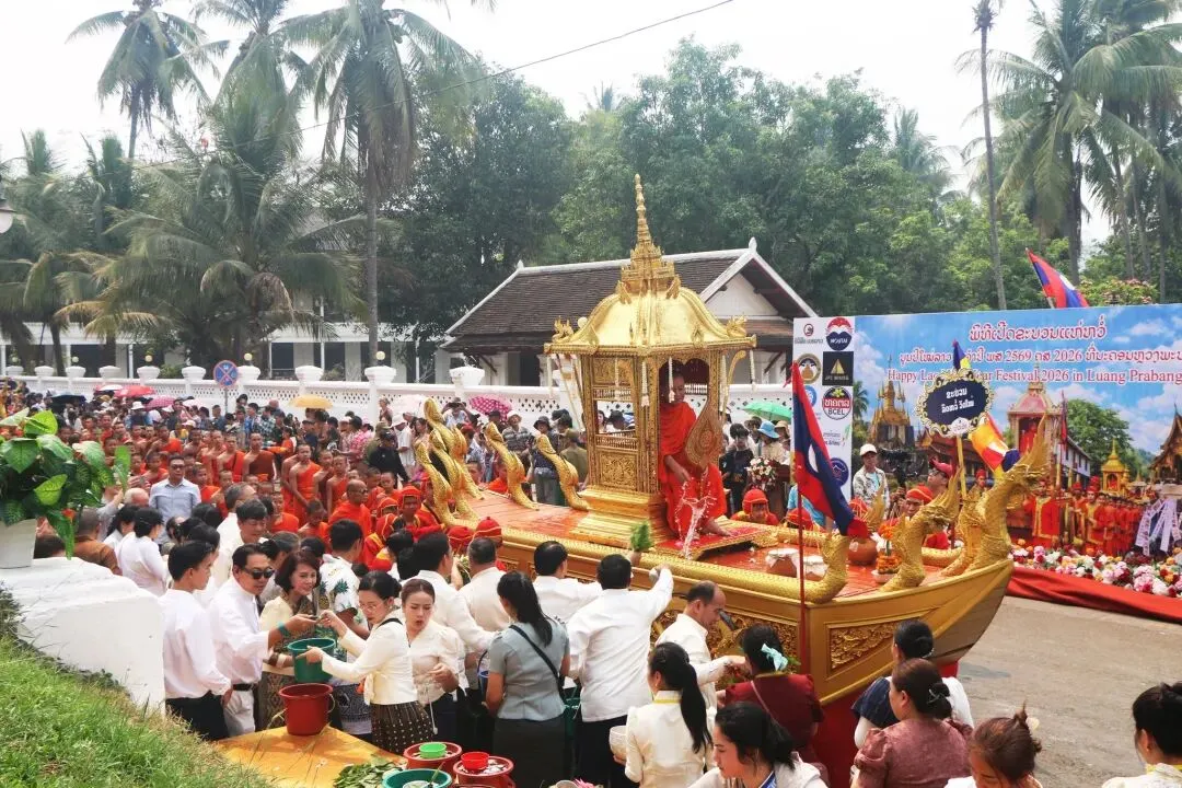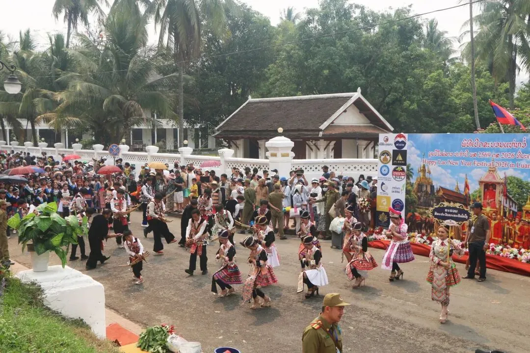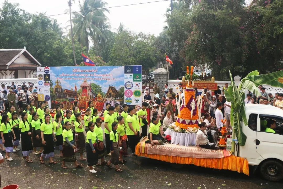 2026年4月15日下午,琅勃拉邦——这座世界文化遗产古城,迎来了一年一度老挝新年最富仪式感的活动之一: 宋干小姐花车巡游。