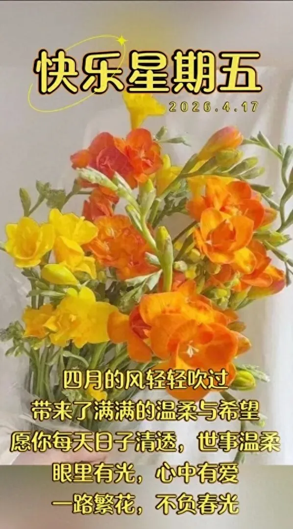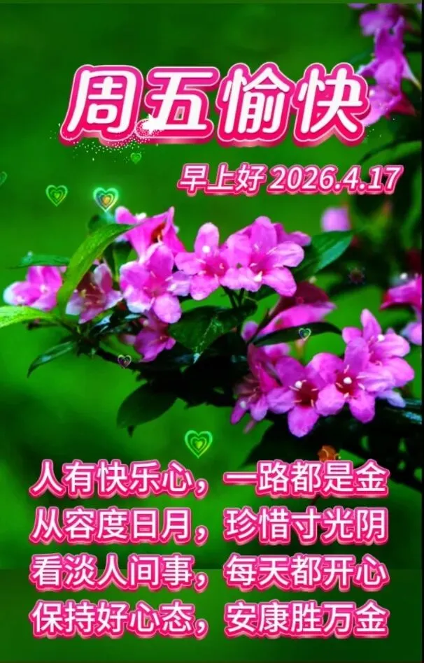 当前位置:首页>美女资讯>2026年4月17日周五早上好图片 早上好温馨问候祝福语 早安精美图片