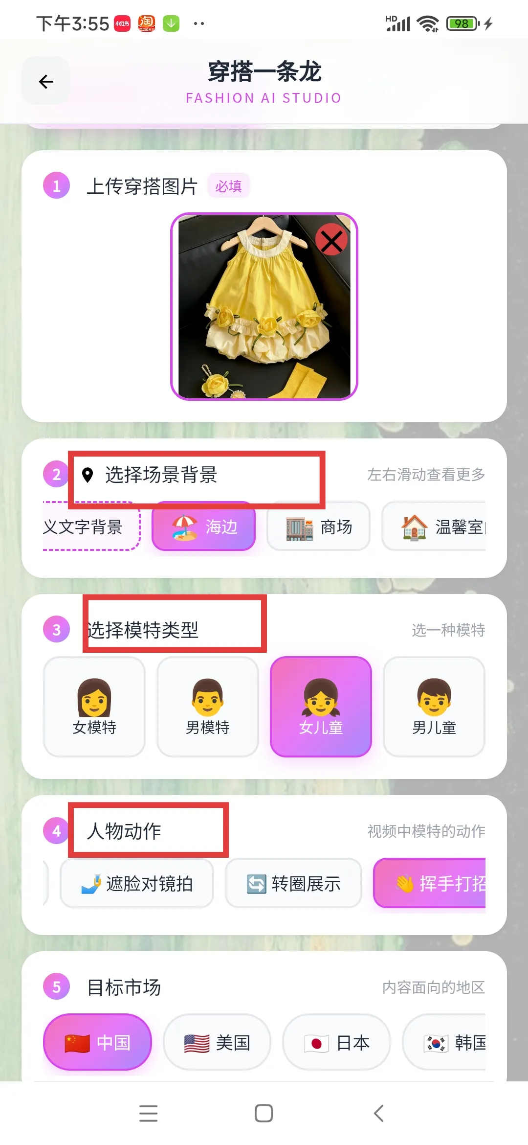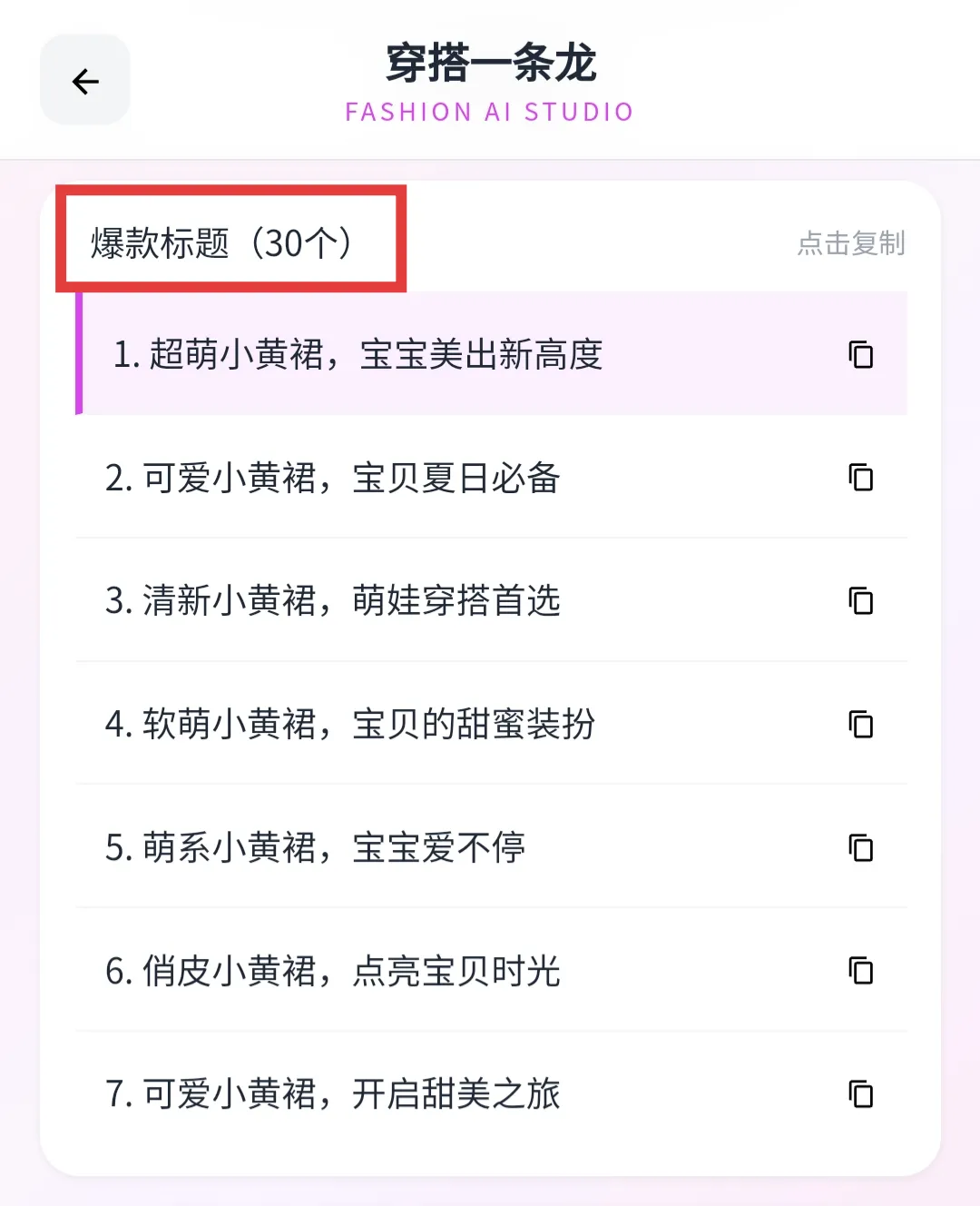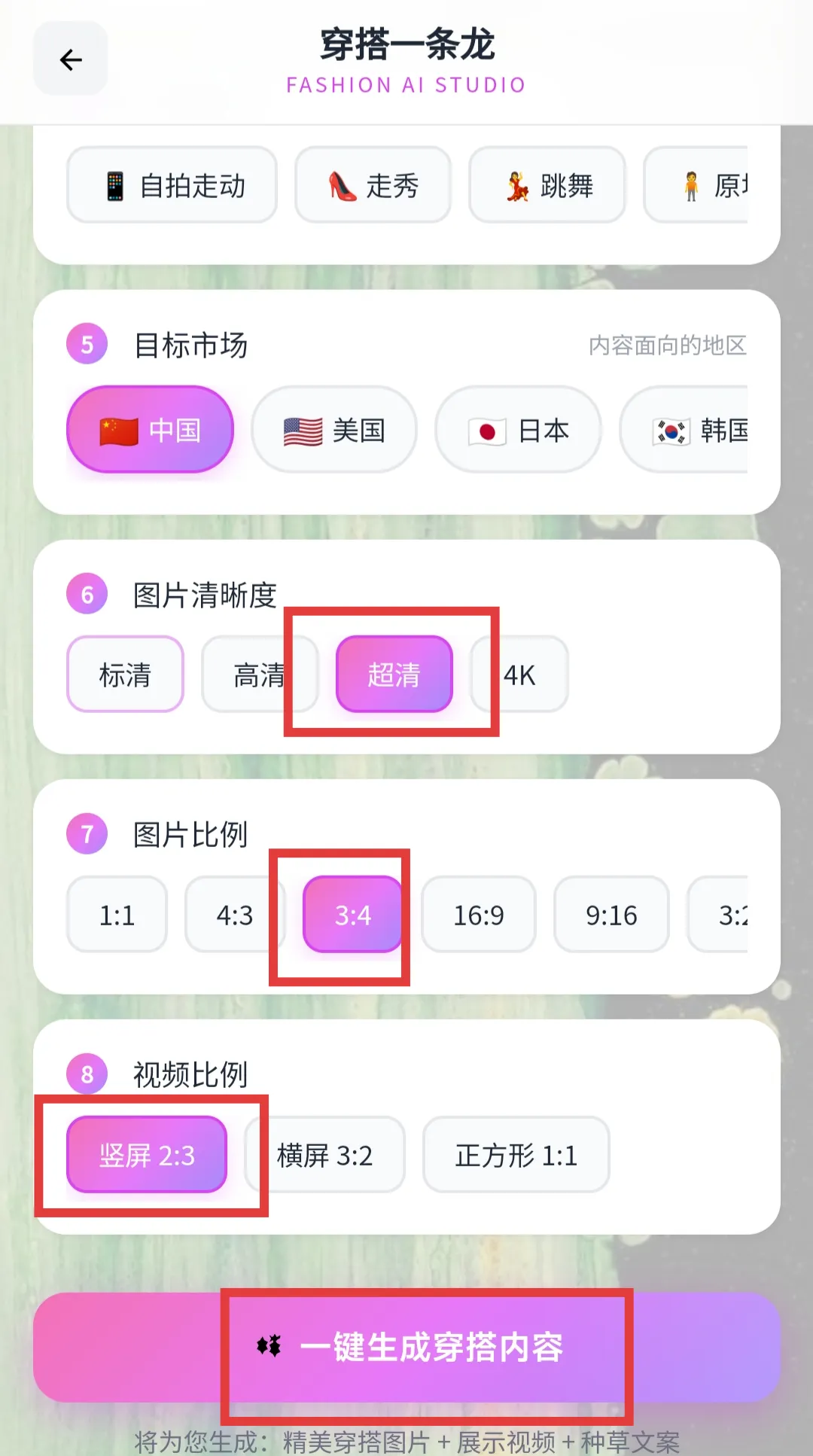 ✅配置好所有的参数之后,我们只要点击一键生成穿搭内容即可。