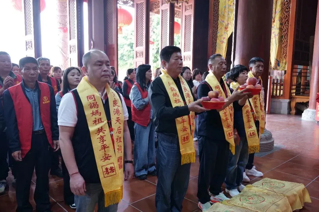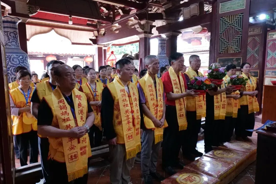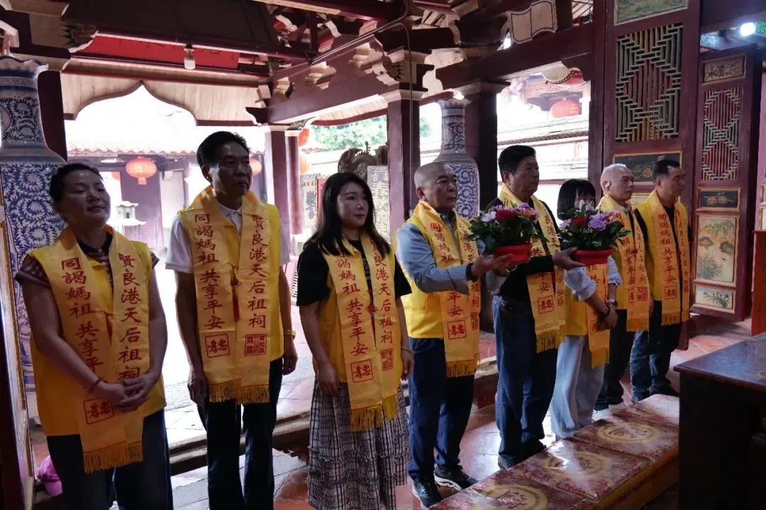 中午12时30分许,福建南平顺昌县谟武天后宫进香团抵达贤良港天后祖祠。祖祠董事会董事长林自弟对进香团的到来表示热烈欢迎,并陪同进香团向妈祖行庄严的三献礼仪式。