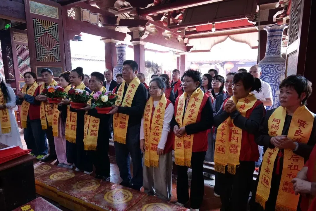 上午10时30分许,广西北海银海区侨港镇伏波妈祖阁主委陈美杰率团抵达贤良港天后祖祠。祖祠董事会副董事长黄金象对进香团的到来表示热烈欢迎,并陪同进香团向妈祖行庄严的三献礼仪式。