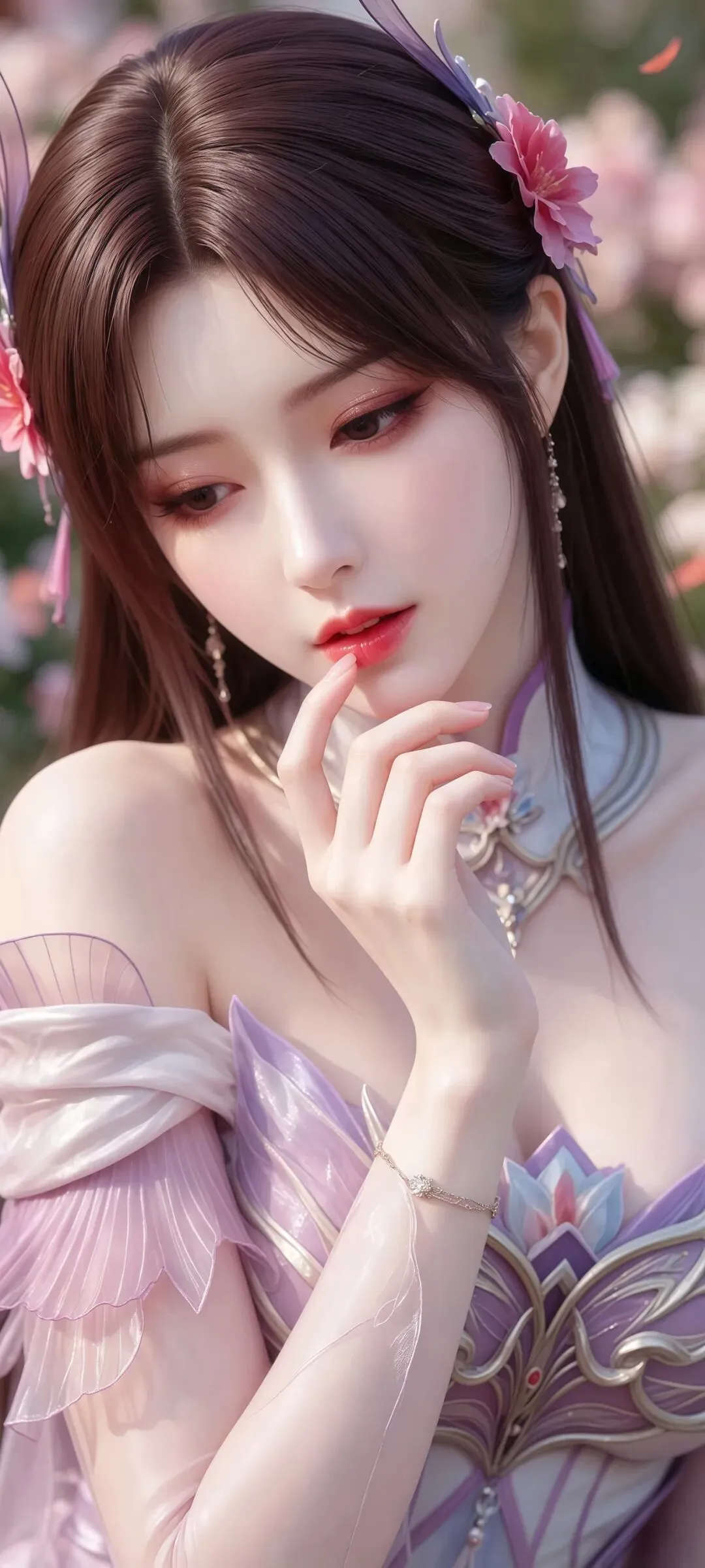 为了贴合不同粉丝的审美偏好,这组壁纸涵盖了小医仙多个经典名场面与风格造型。有青山镇初见时的人间烟火款,粗布衣裙难掩清丽,挽着药篮行走在山野间,眉眼间满是不谙世事的纯粹与温柔,甜而不腻的少女感扑面而来;有厄难毒体觉醒后的清冷破碎款,紫衣裹身,紫眸含霜,周身萦绕着淡淡的紫雾,美而疏离的气质里,藏着不被世人理解的孤独;还有中州毒宗宗主的霸气御姐款,华服加身,气场全开,举手投足间皆是掌控全局的从容,眼底却依旧留着对故人的温柔。每一款造型都精准拿捏角色神韵,总有一款能戳中你的心动点。
