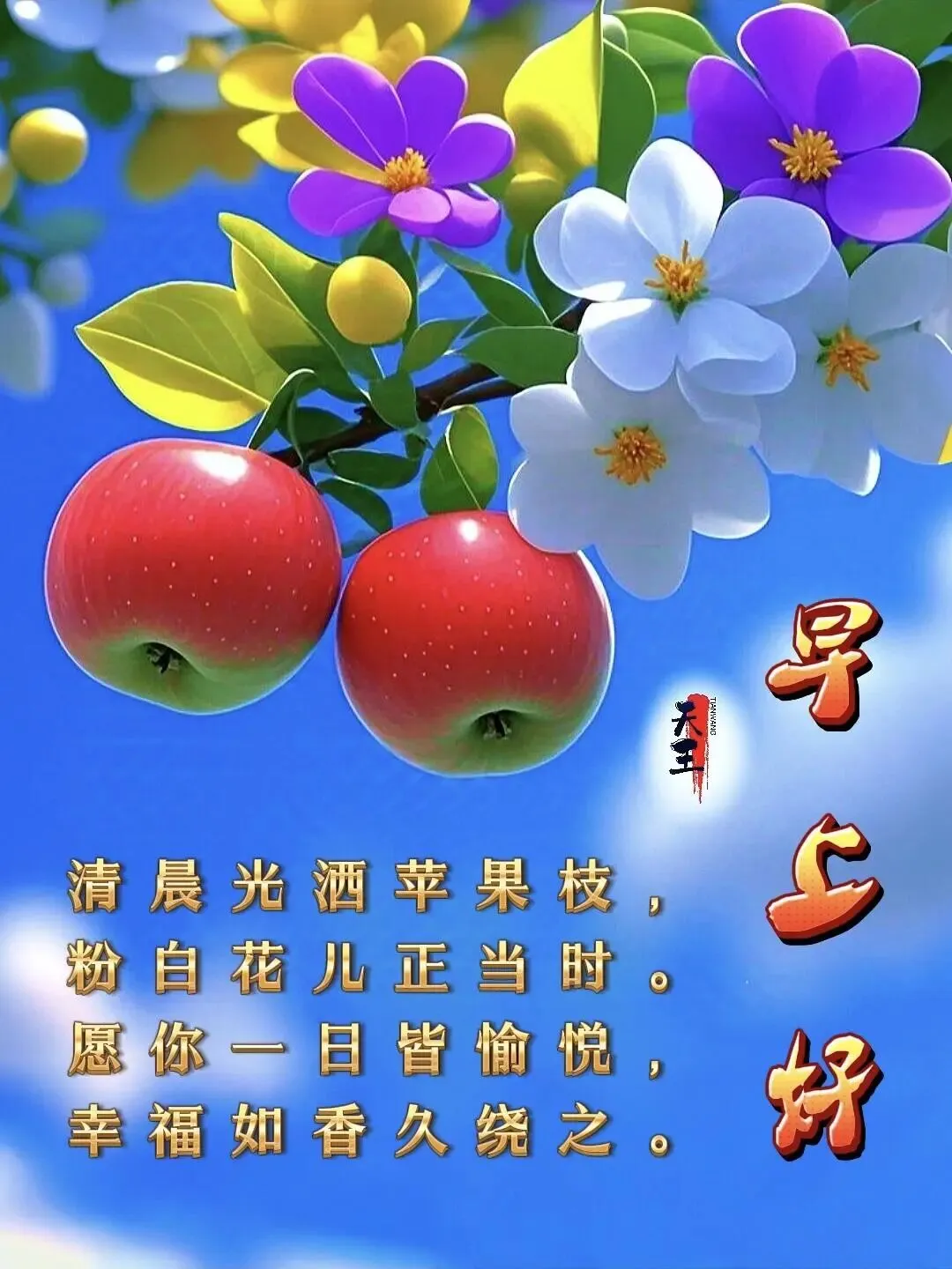 早上好,大自然中充满了吉祥和祝福,希望你能够时刻感受到它们的存在。愿你每天都是与幸运为伴,与快乐同行,漫步美好的人生之路。🌺🌞🍎🎉