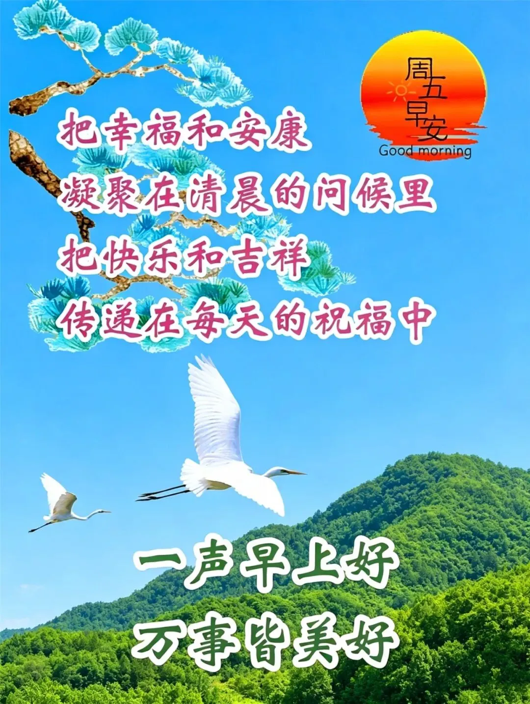 只要心情舒畅,山水依旧风光;只要身体健康,风景总在前方;只要童心不老,永远活得漂亮;一生难得遇好友,真诚相待无所求,周五早上好!