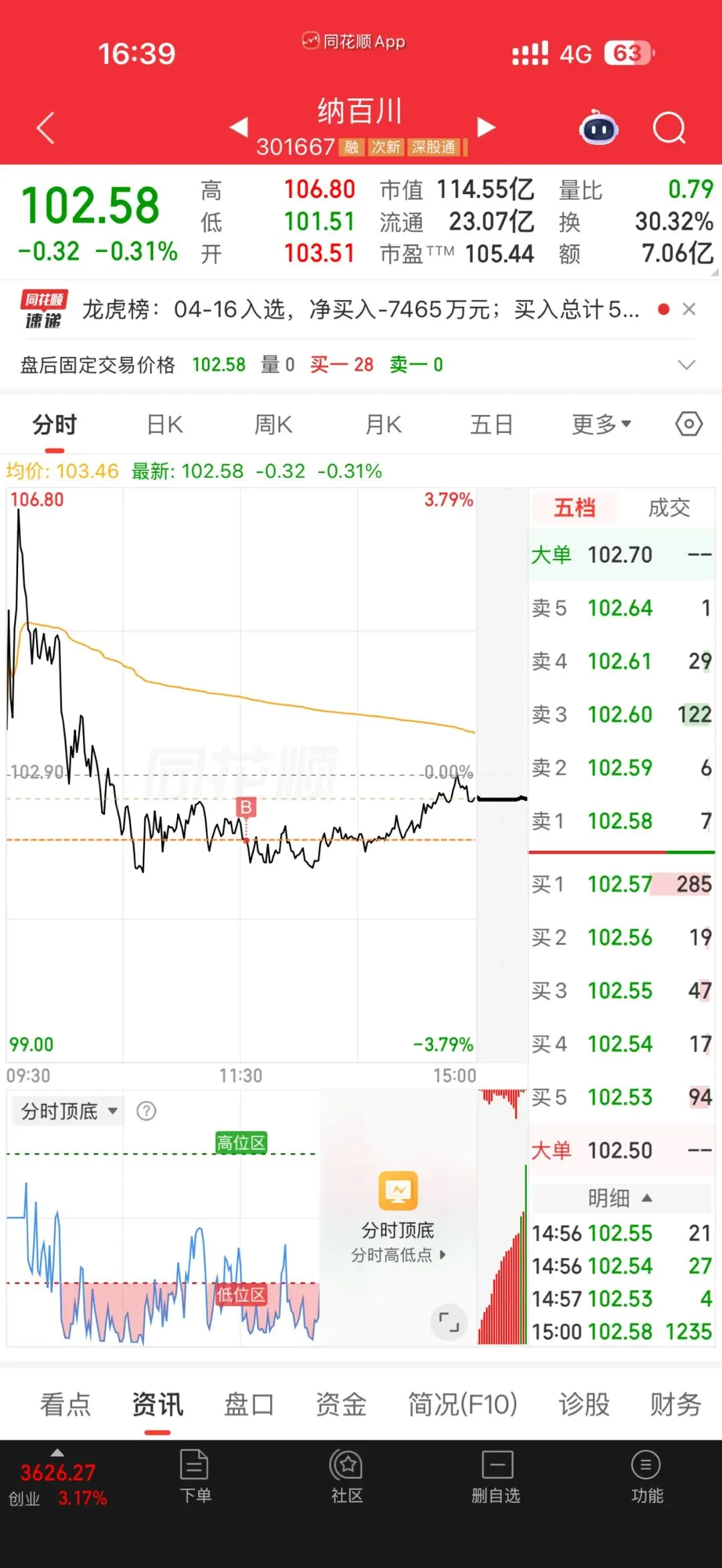 在福鞍止盈后,我选择了低吸百川(图中B点),这是一笔典型的「次新日内低吸」操作。