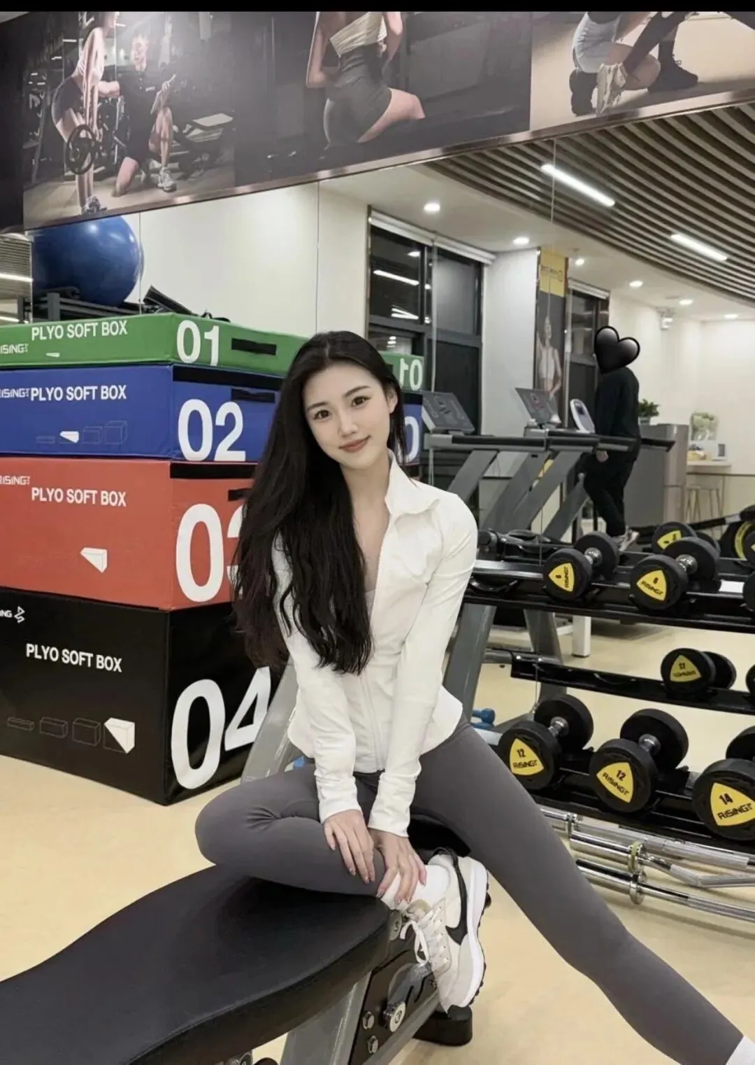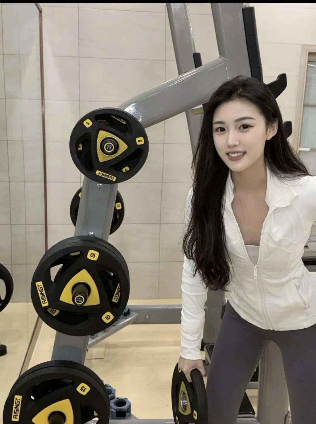 她练了整整一个半小时,从深蹲到硬拉,从划船机到椭圆机。