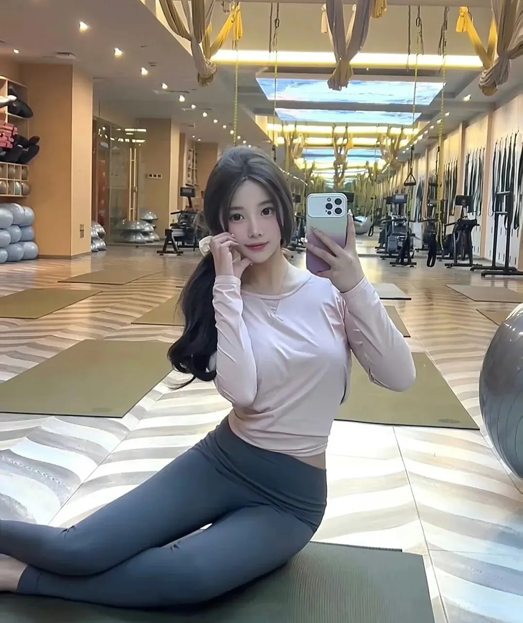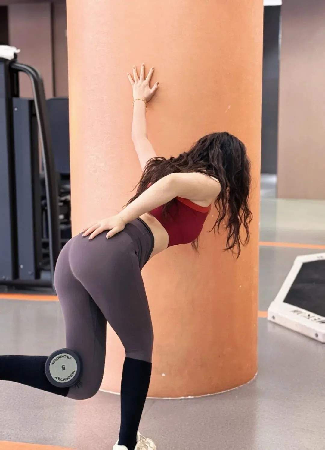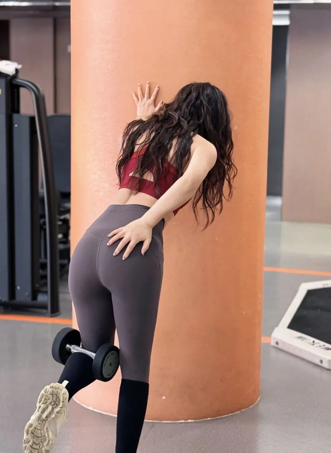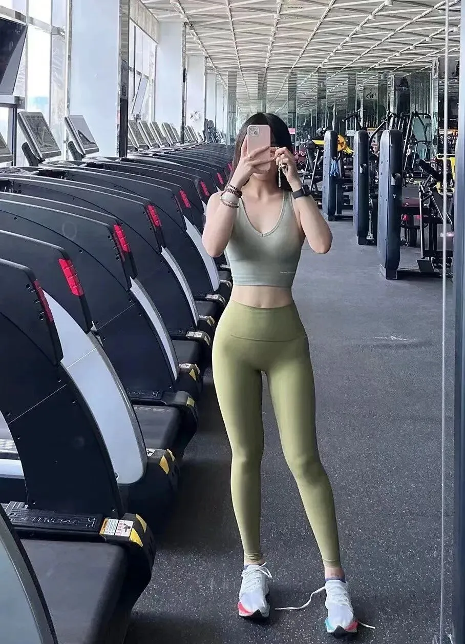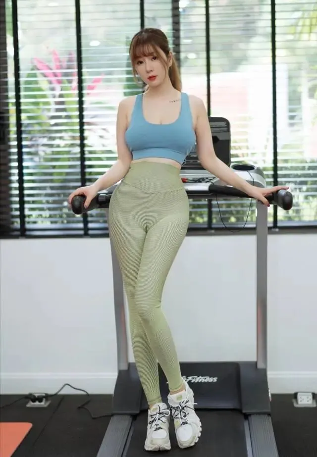 下面是同色系瑜伽裤,紧紧包裹着臀部和大腿。