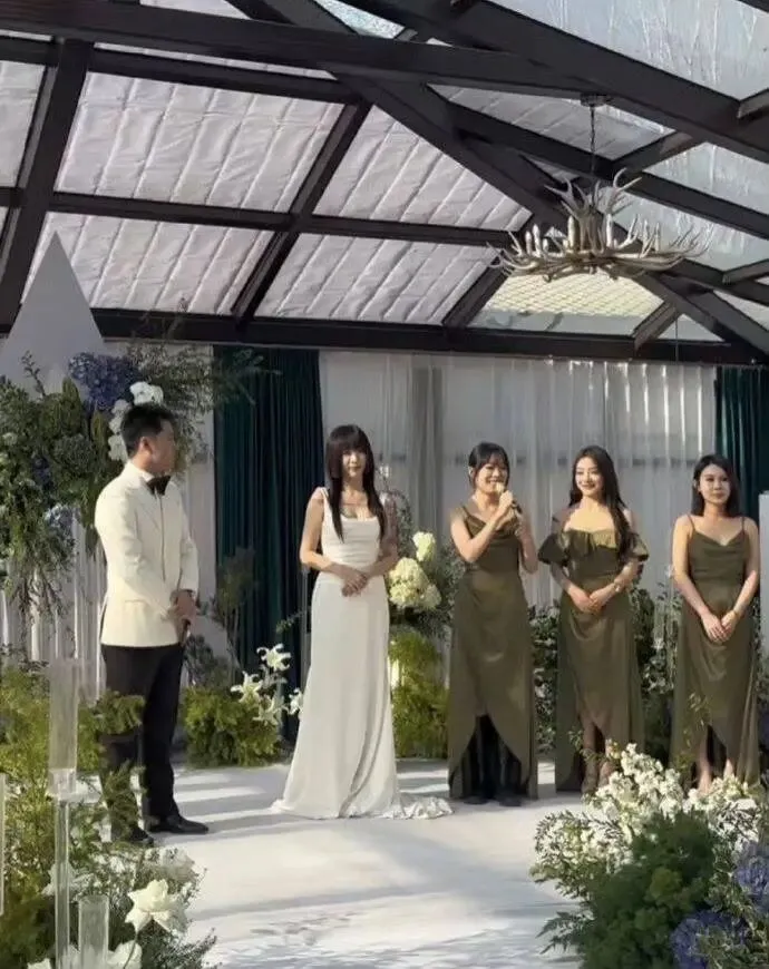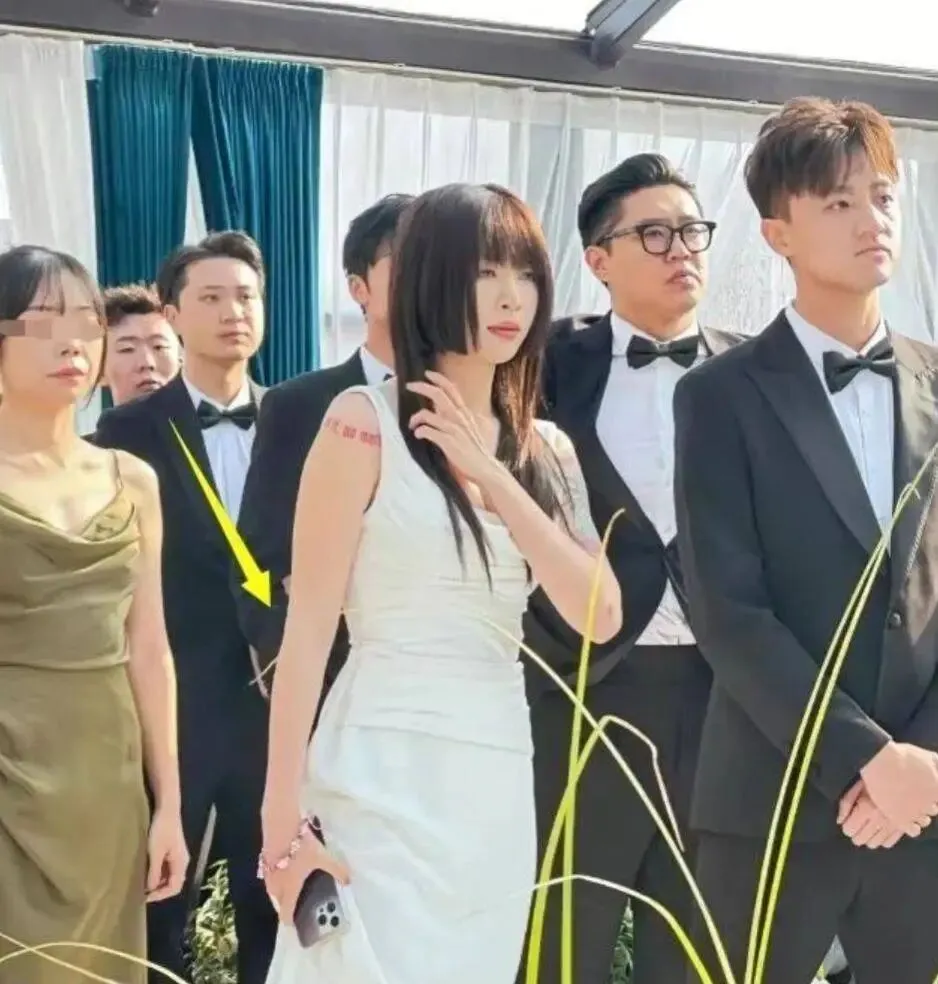 一身白裙跟新娘撞色,和其他绿裙伴娘格格不入,公主切发型配明显纹身,跟视频里清纯灵动的样子判若两人,怼脸照看上去脸部浮肿,网友直呼“被骗惨了”。