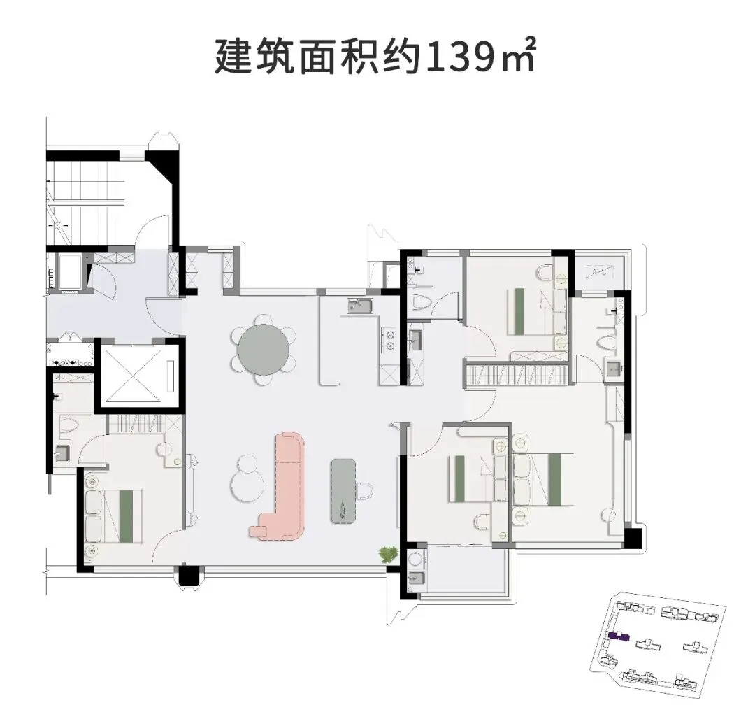 约37㎡客餐厅一体化,房+双套卧+三卫,整体格局通透大气。同级罕见的独立储藏间,最夸张的当属全明电梯厅,TA竟然还有超10㎡入户花园与270°转角窗 140㎡级空间尺度,堪比 160㎡的大宅排场,在120㎡赛道里,可以说是当下莆田独一档