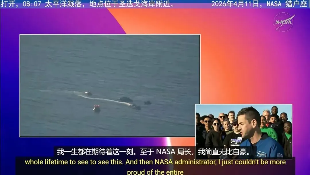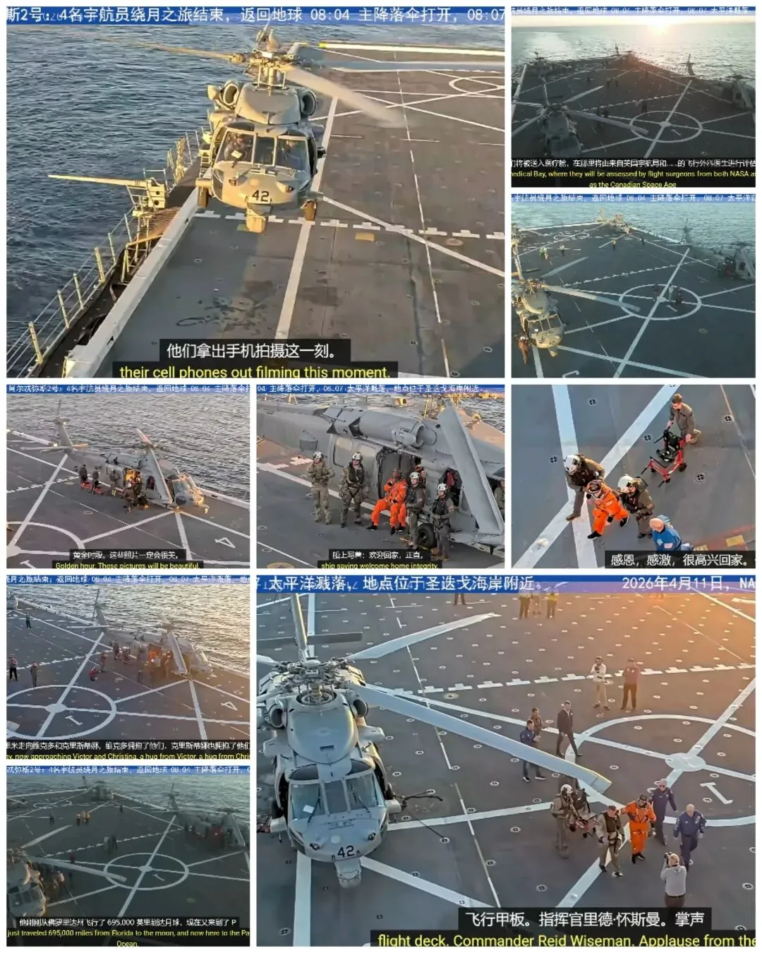 作为一名航天发烧友兼空间技术科研工作者,咱也于上周六4月11号一大早就在手机上全程观看了几个微信蝴蝶号搬运的NASA猎户座载人飞船在太平洋东海岸溅落回收全程直播画面。