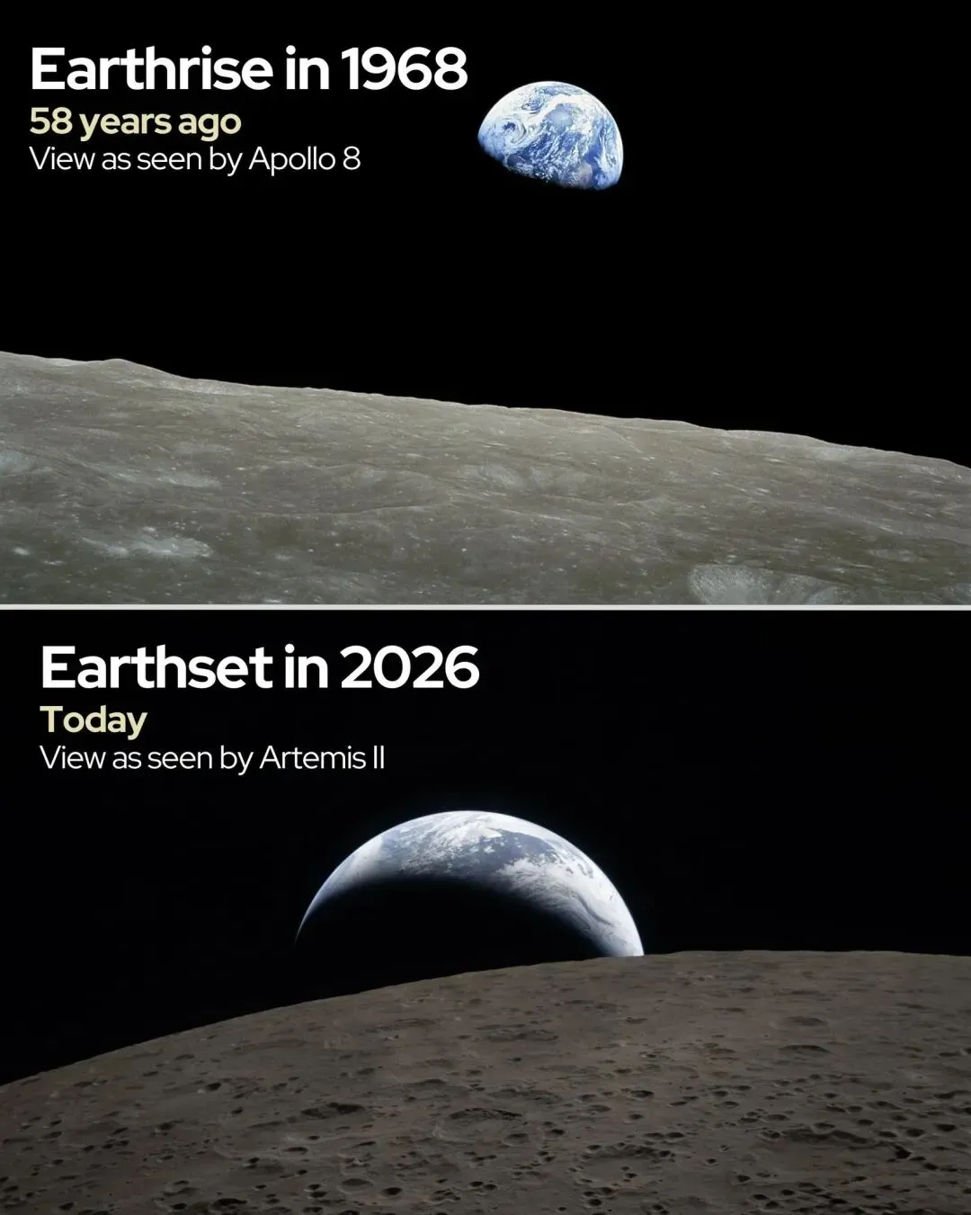 十分巧合或许也是NASA有意而为之,本月初阿尔忒弥斯Artemis 2猎户座Orion飞船飞掠月球的8字形往返地球🌍路径与上世纪1970年4月阿波罗Apollo 13奥德赛Odyssey飞船登月失败后的逃生路线高度重合。Apollo 13仨人乘组的逃生返回路径为56年后的Artemis II四人乘组的载人绕月路径指明了方向,这充分说明了美国航天业界老、中、青科技工作者之间相互信任的代际传承精神。