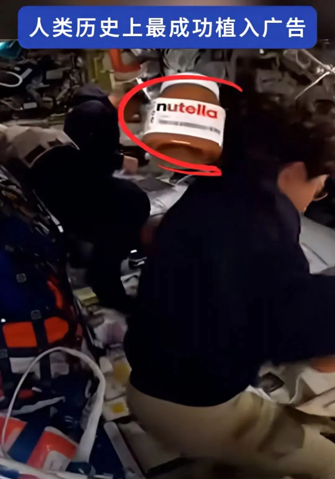 就连猎户座女宇航员里斯蒂娜·科赫(Christina Koch)爱吃的Nutella(能多益)榛子可可酱也在NASA直播镜头前飘过😋