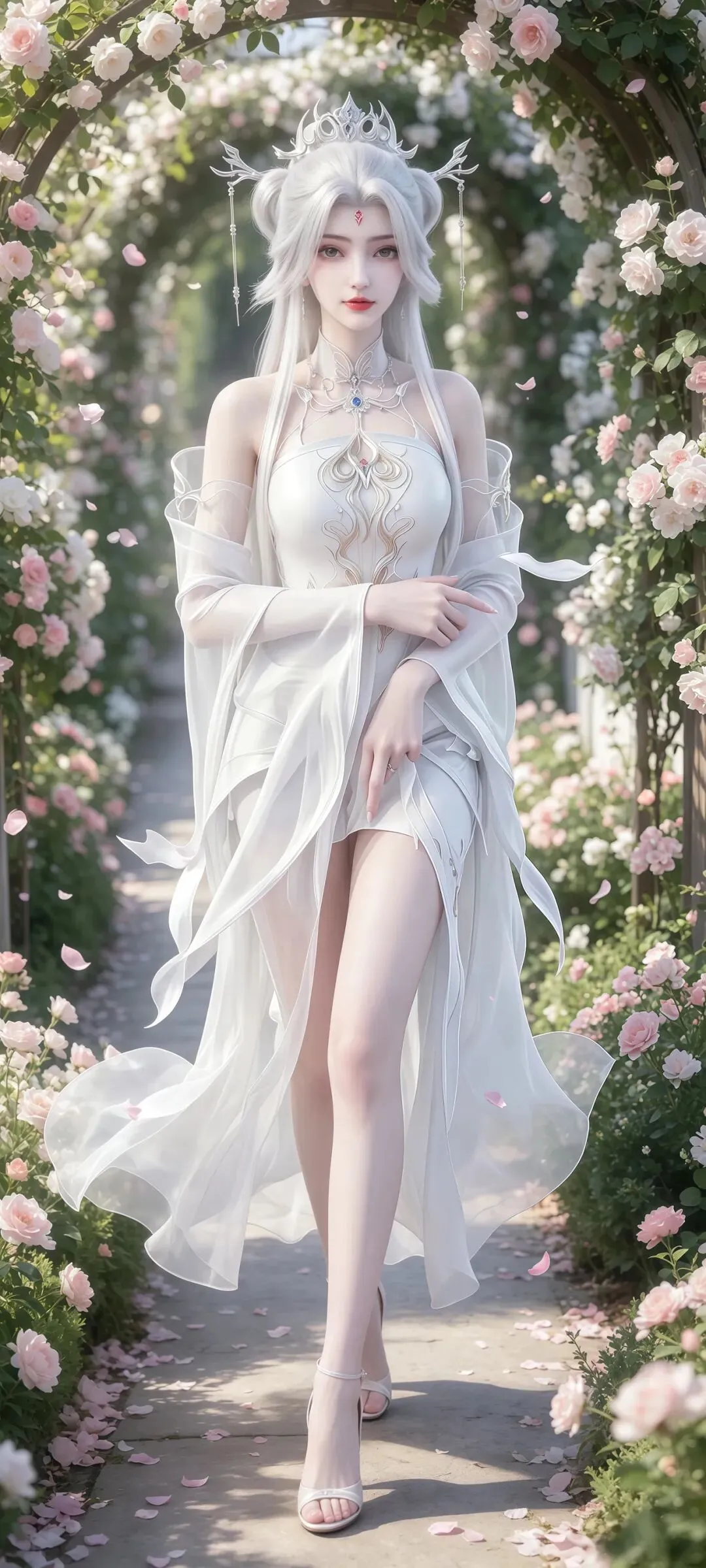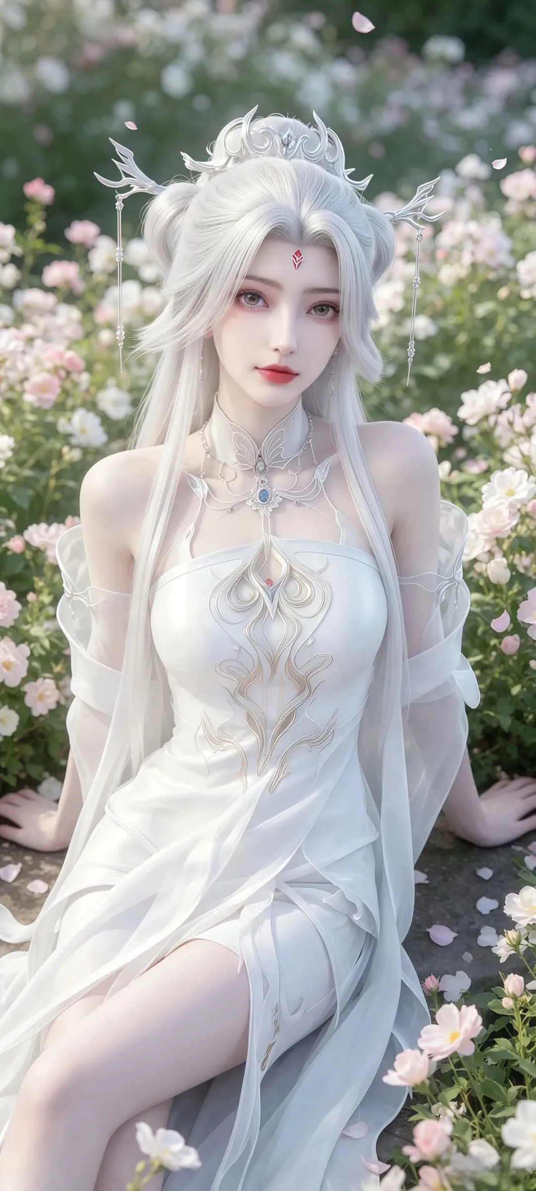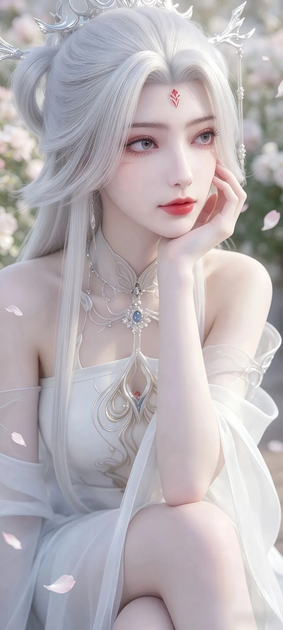 小白的壁纸之所以能成为国漫壁纸中的经典,离不开对角色造型细节的极致打磨,每一处设计都藏着满满的诚意。国漫中经典的白衣素裙造型,在壁纸里被呈现得淋漓尽致,轻盈的衣料带着恰到好处的垂坠感,衣摆处绣着的暗银狐纹,在光影下若隐若现,既呼应了她九尾天狐的身份,又不显得浮夸张扬。发丝的刻画更是细腻到极致,随风飘动的碎发带着自然的蓬松感,根根分明却不杂乱,搭配上清透灵动的狐系妆容,眼尾一抹淡淡的红韵,既添了几分妩媚,又不失骨子里的清贵。更让人惊艳的是九尾的呈现,或半隐于衣袂之后,只露出一截蓬松雪白的狐尾,添了几分朦胧美感;或九尾尽数舒展,在月下铺展开来,自带震撼人心的气场,每一张壁纸的光影都有着电影级的质感,放大看也全无瑕疵,完美适配各种屏幕尺寸。
