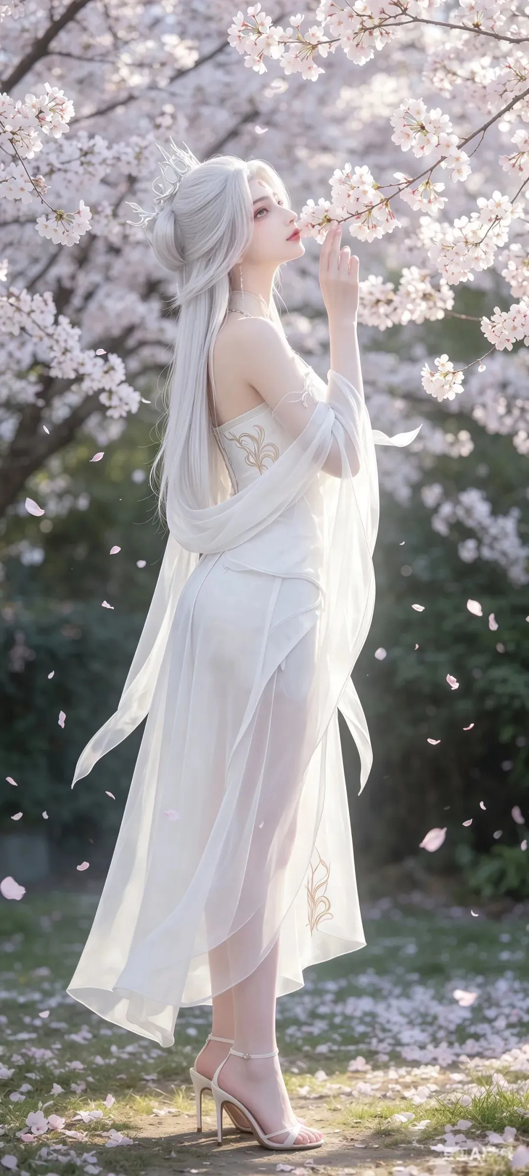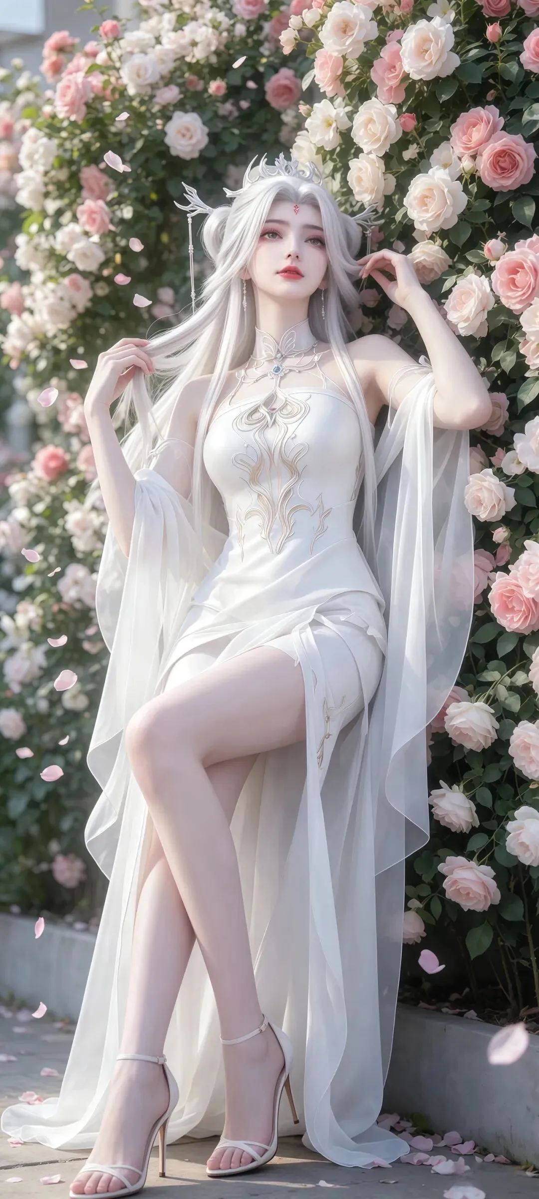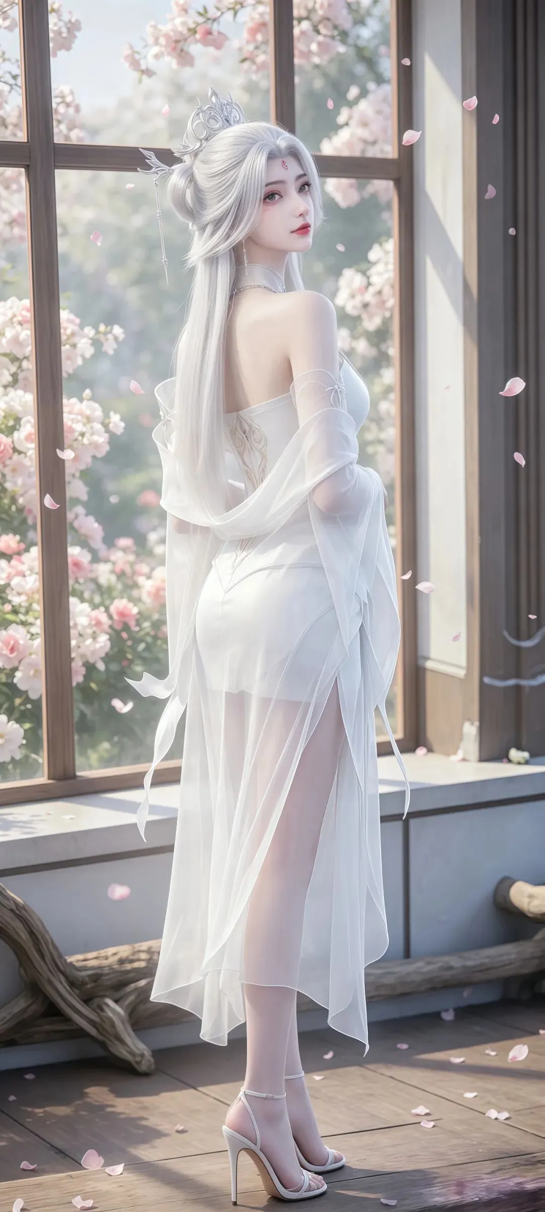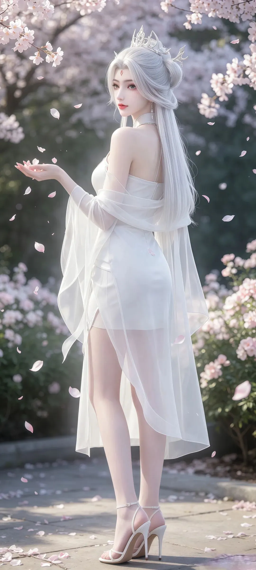 小白的壁纸之所以能成为国漫壁纸中的经典,离不开对角色造型细节的极致打磨,每一处设计都藏着满满的诚意。国漫中经典的白衣素裙造型,在壁纸里被呈现得淋漓尽致,轻盈的衣料带着恰到好处的垂坠感,衣摆处绣着的暗银狐纹,在光影下若隐若现,既呼应了她九尾天狐的身份,又不显得浮夸张扬。发丝的刻画更是细腻到极致,随风飘动的碎发带着自然的蓬松感,根根分明却不杂乱,搭配上清透灵动的狐系妆容,眼尾一抹淡淡的红韵,既添了几分妩媚,又不失骨子里的清贵。更让人惊艳的是九尾的呈现,或半隐于衣袂之后,只露出一截蓬松雪白的狐尾,添了几分朦胧美感;或九尾尽数舒展,在月下铺展开来,自带震撼人心的气场,每一张壁纸的光影都有着电影级的质感,放大看也全无瑕疵,完美适配各种屏幕尺寸。