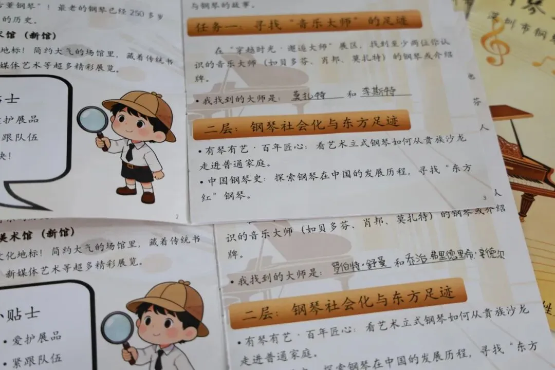 他们专门为这次研学设计了两节先导课,音乐组老师带着孩子们提前“预习”了钢琴的前世今生,美术组老师帮助孩子们认识三位即将见面的艺术家,于是手里那本研学手册,就不再是陌生的作业本了,像等着他们去“闯关”的藏宝图。