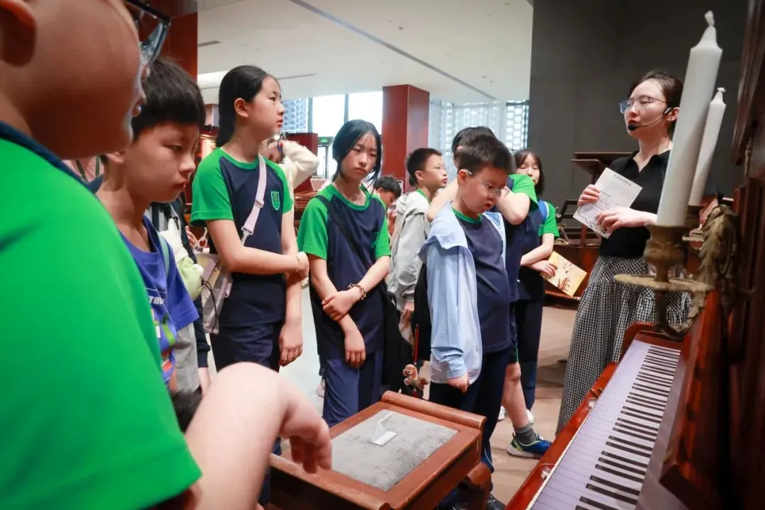 近日,在校长助理、课程发展中心主任陆晶、音乐&美术组和年级老师的带领下,五年级的同学们带着音乐&美术组自主设计的《钢琴与美术的对话》研学手册,打卡了两座艺术殿堂——深圳市钢琴博物馆与深圳市美术馆,展开一次聆听百年回响与触摸千年时光的艺术之旅。