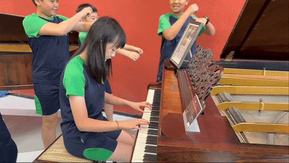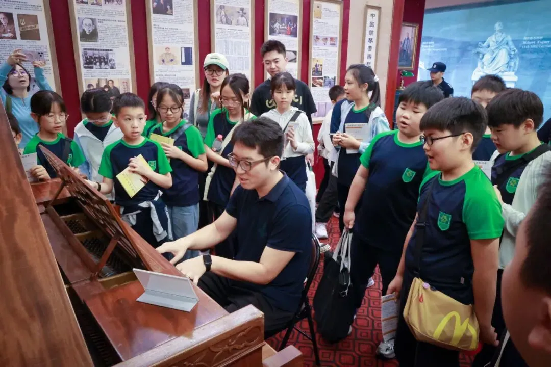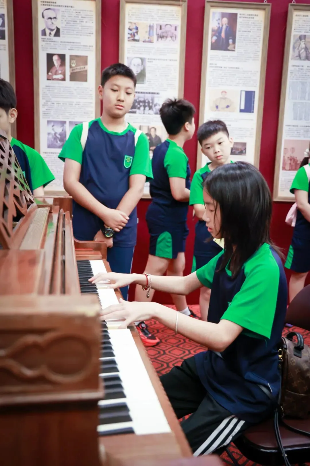 班主任钟老师说,小姑娘平日里是最不喜欢参观博物馆的孩子,但她发自内心地喜爱钢琴,还在大家面前沉浸式地弹奏了一首《诀别书》,旁边的小男孩儿竟调皮地当起了伴舞。