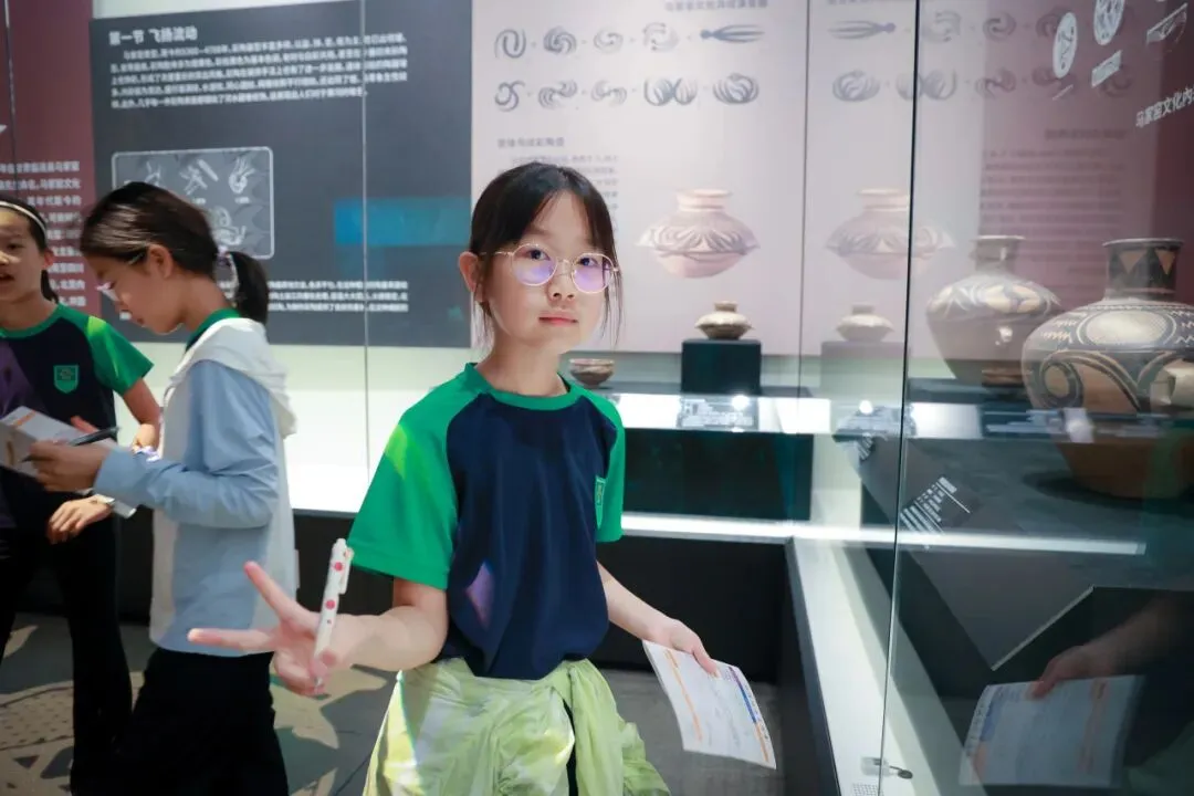 孩子们围在展柜前,仔细观察着彩陶上的纹路,涡纹一圈圈旋转,水波纹一道道流淌,刘璇老师在先导课中说过:远古先民在彩陶上绘制这些纹饰,是因为崇拜自然,祈求风调雨顺、水源充足。