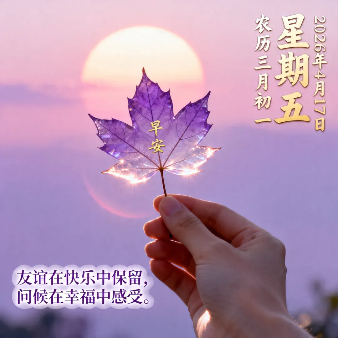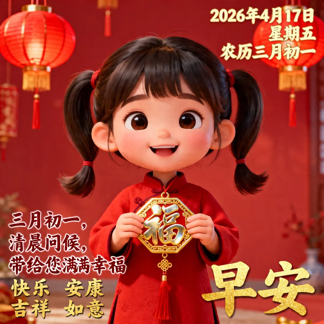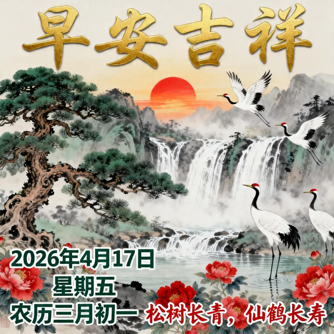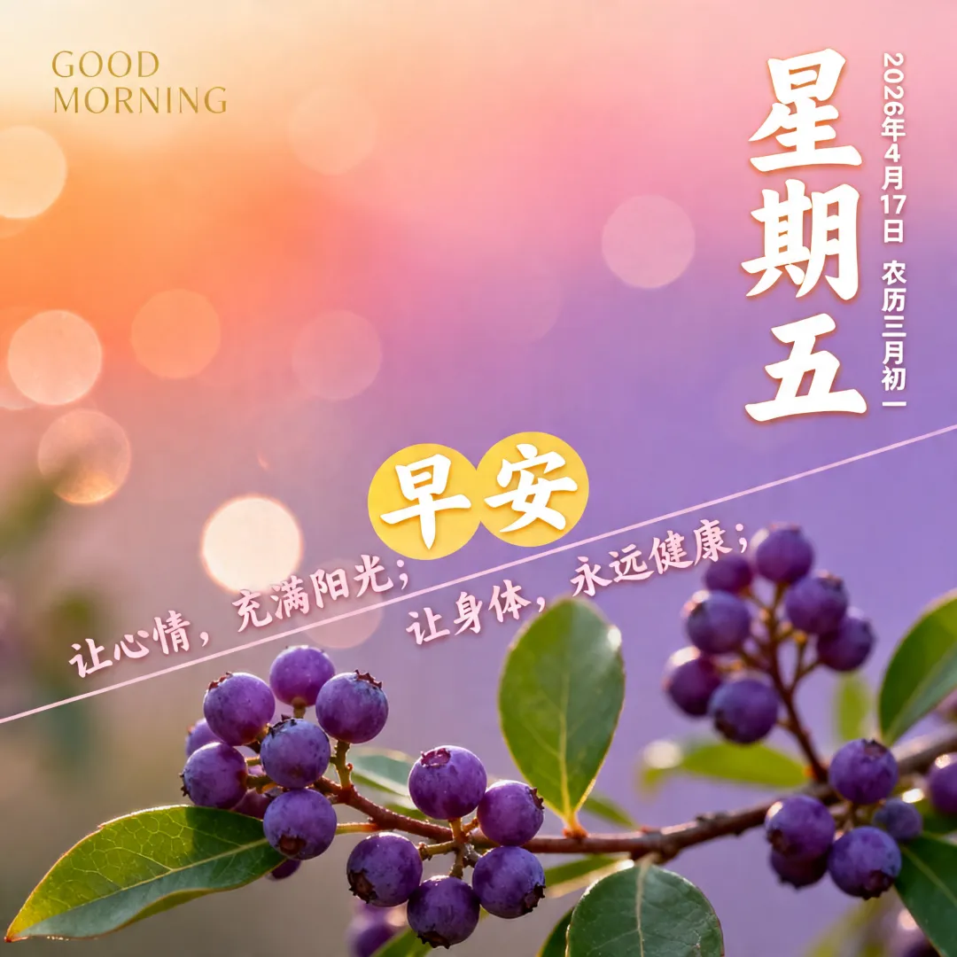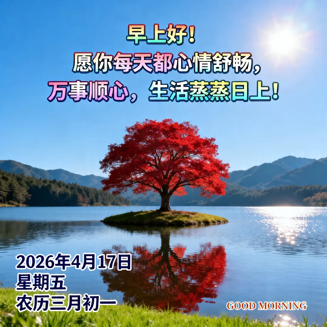 当前位置:首页>美女资讯>2026年4月17日正方形问候图片带日期:晨起送祝福,愿你日日安康,万事顺心.