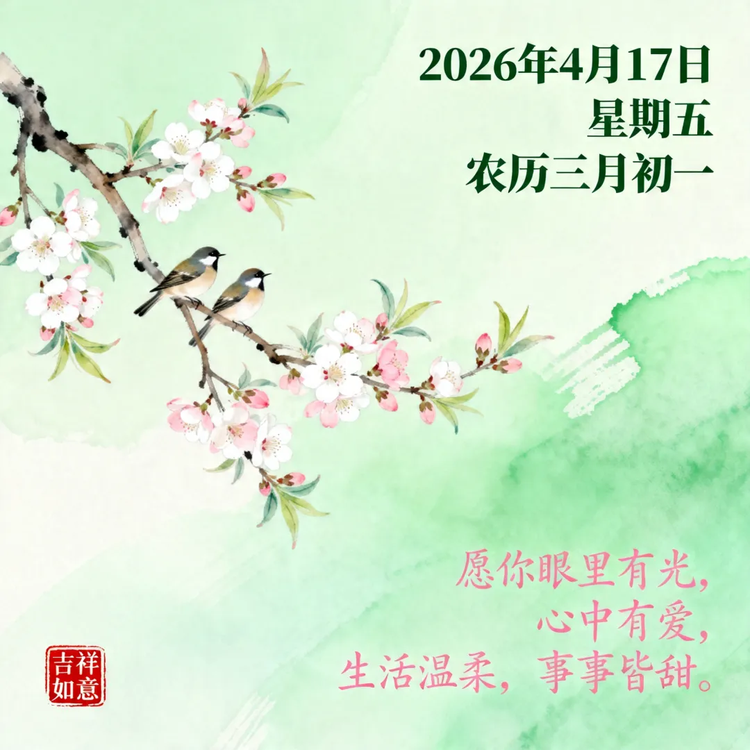 今天是 2026 年 4 月 17 日,星期五,农历三月初一。