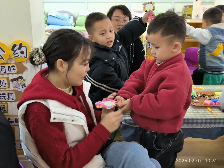 孩子们将亲手制作的礼物送给妈妈、奶奶、外婆。收到礼物的同时,她们感受到了幸福和快乐。