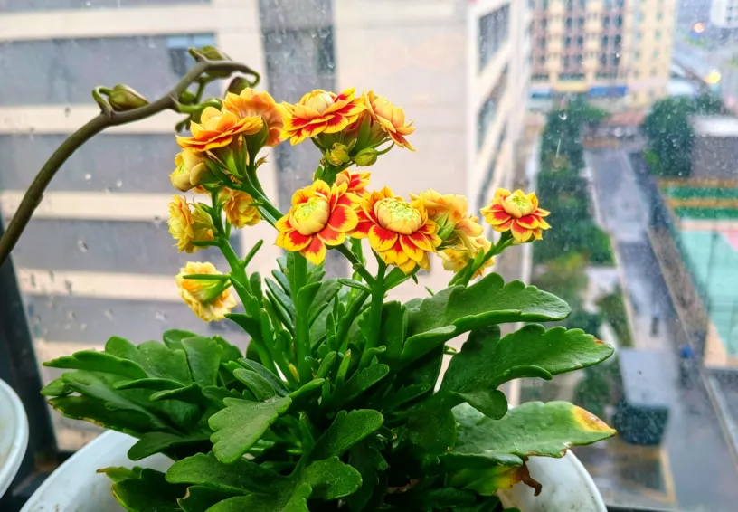 我端着水杯,站在窗前看了很久。雨天的沉闷,被这一朵花轻轻打破了。它不怕阴雨,不惧凉风,反而在这样的天气里开得恣意张扬。