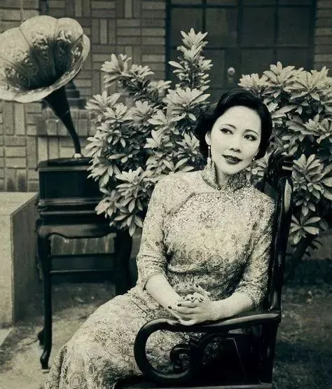 老宅院里的藤椅边,旗袍女子靠着椅背安静坐着,一旁立着大喇叭唱片机,耳饰在阳光下闪着光,旗袍紧贴身形,花纹细密,色调和背景融在一块,椅子扶手稍旧,唤得出当年春日午后的温柔劲儿,妈妈说她见过的姨奶奶就是喜欢在花园里坐着听唱片,那时没有什么叫“复古”,只有日子慢慢流过去,女子手里总得搁点事,一杯热茶、一根绣花针,都是心头的安稳,有时候光影一晃过去,那层从容全都留在眉眼里。