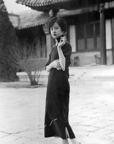 这个画面里,女孩子穿旗袍,手夹着烟卷,脚上一双高跟鞋,神色带一股说不出的清冷,民国那会儿烟卷还不是个人人都能碰得起的玩意,这动作落在了照片上倒显得有点“反潮流”,旗袍领扣拉得紧,袖口却敞得利落,站姿挺直,举手投足都是劲儿,不用刻意凹造型,冷风吹过去,旗袍下摆轻飘几下,那一身雅致带着点不服输的味儿,也只有那个时候的女子,才能把柔和和锐利拧成一股劲儿。