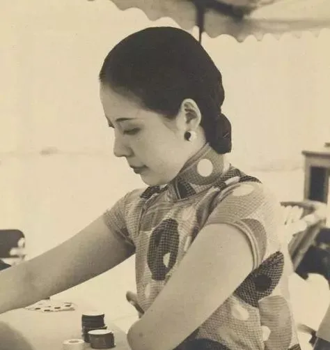 再看这张,旗袍女大学生低头微笑,侧脸温柔,短发贴耳,衣服上是大朵圆点花纹,也不知道是不是赶什么风潮,但这股子清爽劲儿,现在女孩子里头真不常见,桌上的小瓶小罐像是做手工的道具,安安静静地忙着自己的事,外面即使再闹,她的世界里都留了一点岁月的笃定,奶奶年轻时常说,上学的姑娘一定要有一身体面衣裳,旗袍最好不过,坐得住才穿得出。