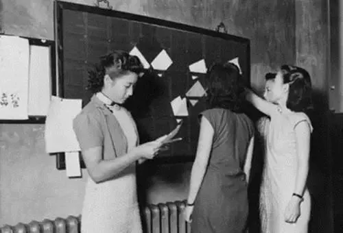 最后来一张老校园里,几位旗袍女生正围在黑板前,有的低头在纸上写,有的伸手上墙贴东西,都是紧身旗袍,短袖斑斓,散发里透着青春气息,屋里柜子、暖气片老老实实站着,没什么多余的装饰,氛围却自在,外婆年轻时一直念叨,女大学生那会儿是全家骄傲,穿旗袍就要穿出个规矩来,教室里读书写字都带点仪式感,以前苦日子从来都没能掩住姑娘们站在学习前的认真劲儿,现在想想,时间过去了那么久,一看到这样的照片,耳边总像又响起铿锵的板书声。