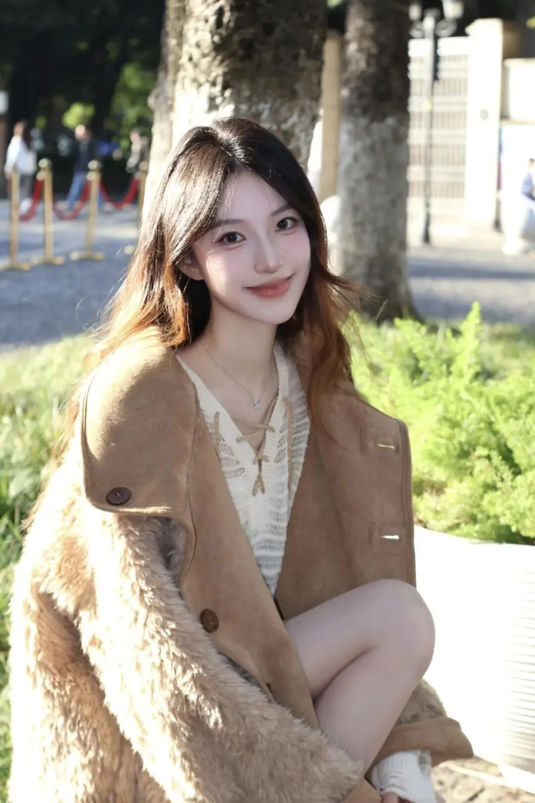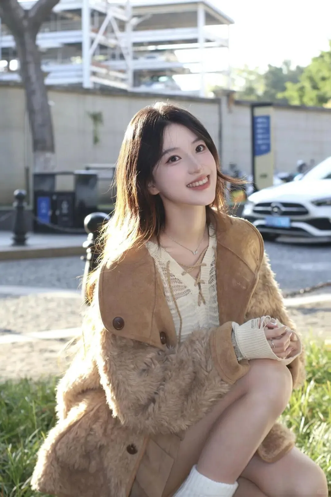 在草地或者台阶上坐着拍时,不要整个人缩成一团。双腿可以一前一后延伸,脚尖绷直,这样能让小腿线条更流畅。一只手撑在身后的草地上,另一只手自然搭在膝盖或者撩头发,上半身微微后仰,这样肚子上的肉肉不会堆积,整个人看起来更舒展。如果是在路边,可以像坐在石墩上那样,双腿交叉,一只脚点地,身体前倾靠近镜头,会显得脸更小更亲切。坐姿的关键在于放松,想象你只是在路边休息被朋友记录下来了,那种松弛感才是最迷人的。