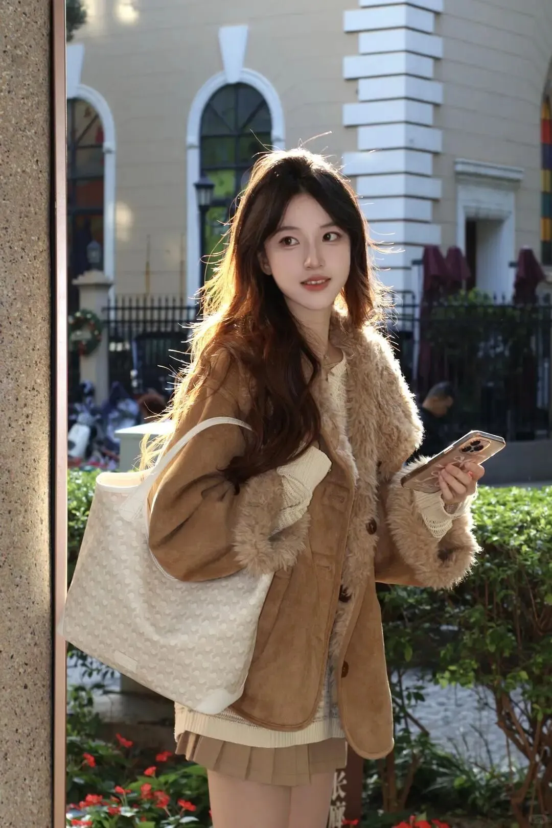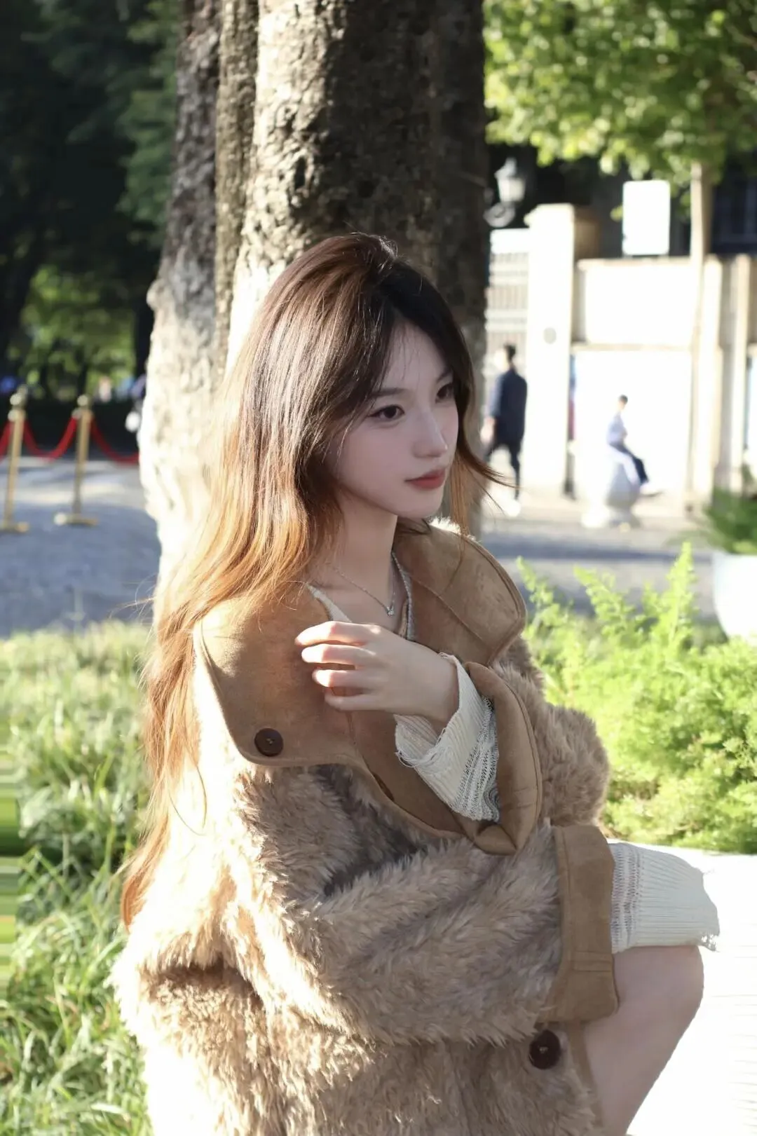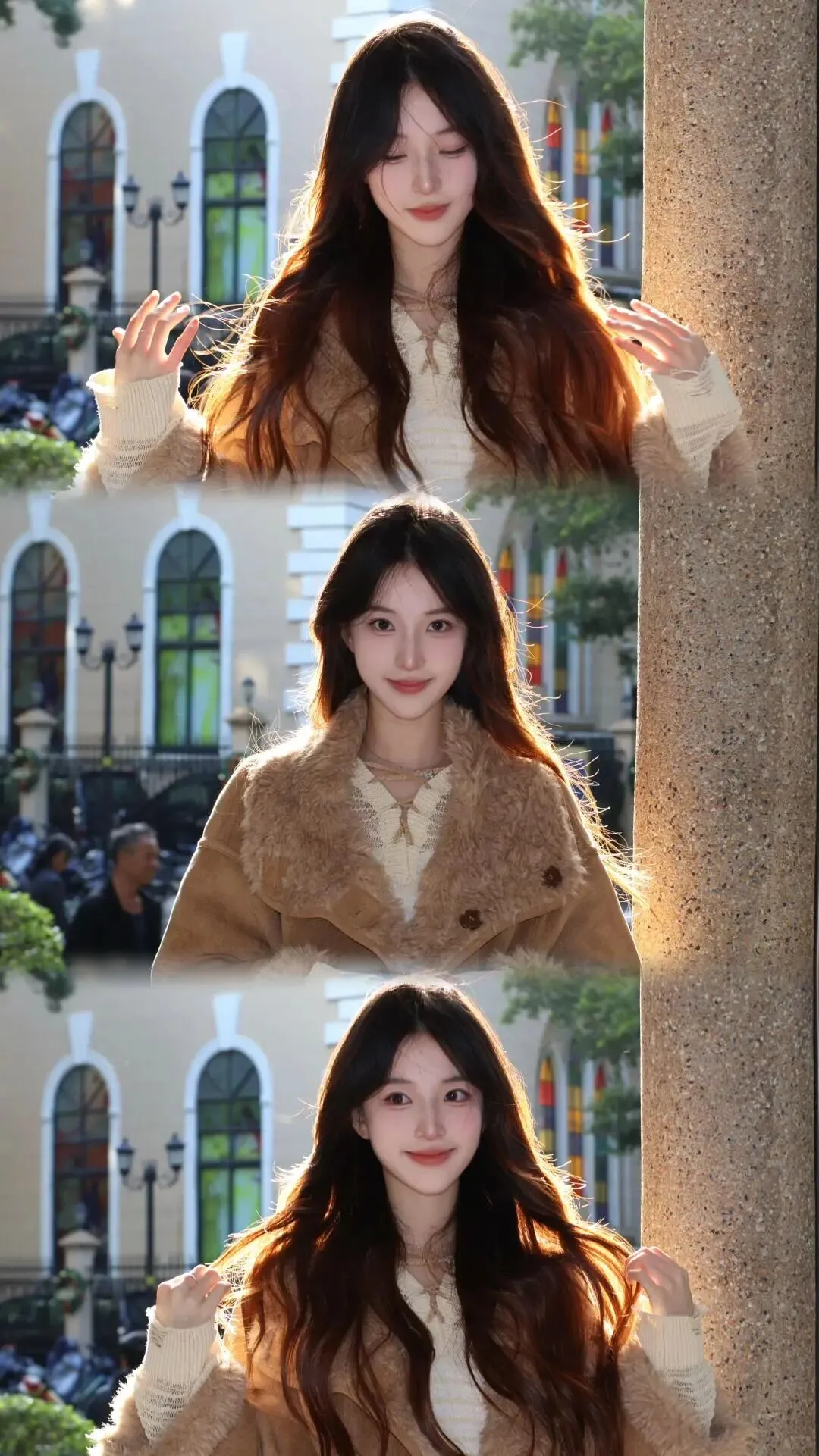 拍照时间最好选在下午三点到五点之间,这时候的阳光角度倾斜,不会在脸上留下难看的阴影。试着背对或者侧对太阳,让光线从你的头发边缘穿过,这样能拍出发丝金灿灿的效果,整个人看起来毛茸茸的特别温柔。就像图片里那样,站在柱子旁边,让阳光打在侧脸和肩膀上,皮肤的质感会显得通透又细腻。不要害怕阳光刺眼,微微闭眼或者低头看手机,都能捕捉到那种慵懒的午后时光。记住,光线到位了,照片就成功了一半,那种暖调的氛围感是后期很难调出来的。