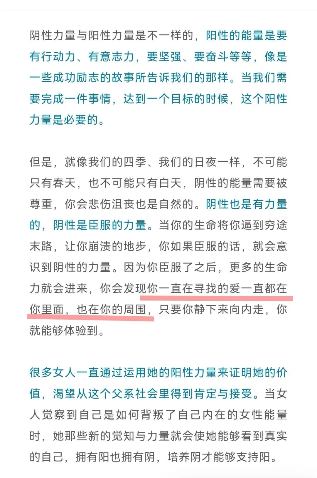 关于阴性力量,“你臣服了之后,更多的生命力就会进来,你会发现你一直在寻找的爱一直都在你里面,也在你的周围,只要你静下来向内走,你就能够体验到”。是这样,真的是太美了🌿