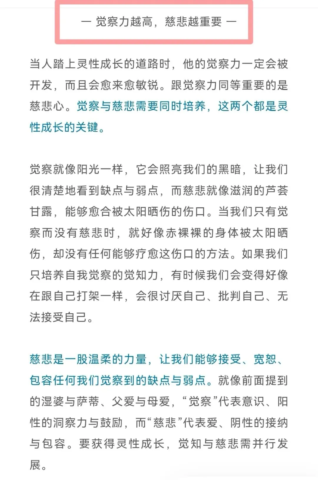 “觉知与慈悲需要并行发展”。是啊,对自己非常非常地慈悲[太阳]