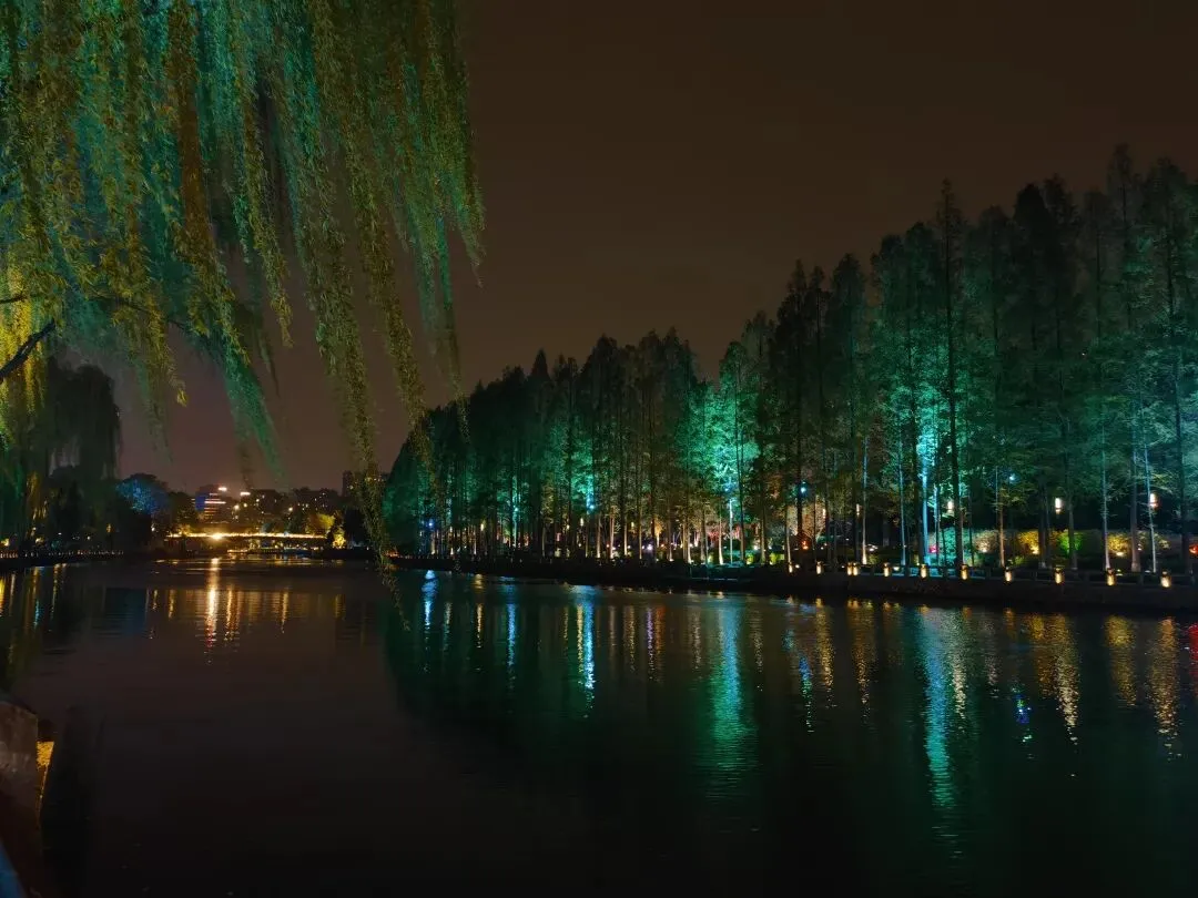 4.晚上沿运河边遛弯儿回家。