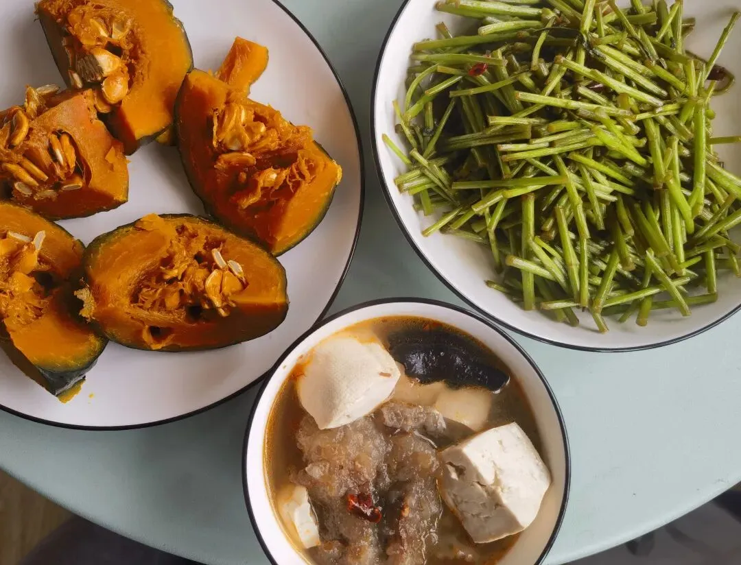 5.蒸了贝贝南瓜,炒了芦蒿,yummy~